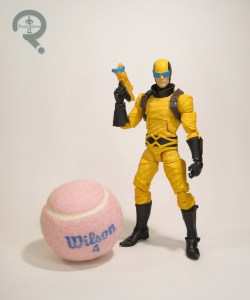 The AIM Soldier marked an important change for Marvel Minimates: Army Builders! Up to this point, you were forced to buy a duplicate of the figure packed with the Variant, and it was at this point that DST officially decided to try to make lemonade out of those lemons, and make the duped figure one that people might not mind having a dupe of. The first offering in the army building venture was those crazy beekeeper guys themselves, who are honestly a pretty natural choice. The AIM Soldier had two add-on pieces, one for the mask and one for the holster. The mask was an all-new piece, and a pretty spot-on one for their classic comics look. The holster was a re-use from Assault Punisher, and it’s a little bulky, but it’s also very easily removed if it’s not your thing. The paint work does a quite nice job of capturing the usual AIM design; there’s plenty of line work on the suits, bot front and back, and the belts even continue all the way around the waist. Under the mask, there’s a fully detailed face with ears and a pair of lenses. The AIM Soldier included a standard pistol (re-used again from Assault Punisher), and a larger rotary gun, which is a slight reworking of one of of War Machine’s cannons.
