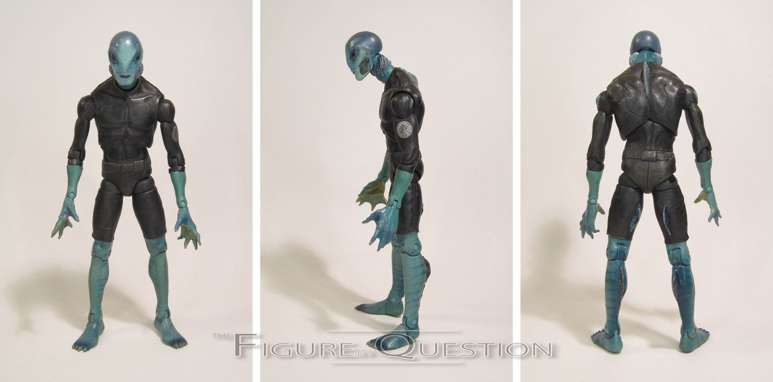 Abe Sapien was released as part of the single-carded first assortment of Super 7’s Hellboy ReAction Figures line, alongside HB, Liz, and Lobster Johnson. The figures are all comic-based, filtered, of course, through the usual ReAction lens. The figure stands 3 3/4 inches tall and he has 5 points of articulation. His sculpt was unique to him, and it does a respectable job of taking Mignola’s fish-man design and making it look like a Kenner figure from the ’70s. Proportionally, his head seems maybe a bit big, but I think that may also be slightly linked to the way the gills work. Beyond that, it’s a neat sculpt. They’ve gone more for the “underwater adventure” look for Abe, so he’s got his shorts and belt, but that’s it. The feet are an interesting quirk; as far as I know, Abe’s always been depicted with actual toes, albeit frequently webbed ones, but this figure gives him sort of hooves, kind of like what Hellboy classically has. I’d chalk it up to shared parts, but the two have very different details elsewhere on their legs, so it can’t really be that. Just one of those things, maybe to sell the frequent Kenner inaccuracies? The color work on Abe is pretty fun; the teal sort of color is brighter than Abe is usually depicted, but it fits the vibe of the line very well, so I very much dig it. Application’s all pretty clean, and there’s a surprising amount of accenting. Abe is packed with a harpoon, which is great for all those harpooning needs.