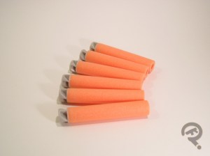 At the very least, it’s not terribly top heavy which is a concern I had before it was released. What I don’t quite get is why the barrels are so far apart in the cylinder. Typically, the benefit of lower capacity in a revolver is a lower profile, but the cylinder for the Quadbearded-tit is barely smaller than the one in the Hammershot, which holds 5 rounds normally. But in addition, modders have shown it can handle 7 rounds in the same space quite handily. It just feels needlessly limiting to cap the capacity at 4, especially when it doesn’t even enable some other gimmick or function in the blaster. The performance is on par with other Nerf pistols. It doesn’t have the most power or range ever, but no one expects it to. Being in the Accustrike series, there’s nothing mechanical that separates this from any other blaster, all that means is it’s orange and comes with Accustrike darts as opposed to standard Elites. The darts do actually make it a little easier to hit targets from further away, so they’re good for surprise pot-shots at your younger siblings, with or without busting into their room first. The QuadAndean Cock of the Rock (it’s a real bird, look it up) comes packaged with 4 Accustrike darts.