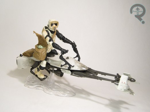 an articulated jaw!). The sculpt of the figure is a fairly realistic take on a skeleton, and it’s appropriately sized to fit within the basic male body. The parts aren’t quite cross compatible, but I imagine you could do some swapping with minor customization. Freleng includes a basic display stand, done up in the same shade of pink as him. He also has a set of 6 clear add-on pieces. Two of them attach to the feet and are used to secure him to the stand. The other four can be attached to the arms and legs, to allow him to wear the armor off of one of the basic male bodies. Undead army FTW!