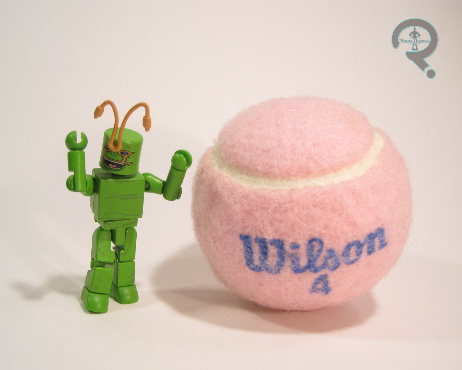 odd. It’s also not as wrinkly as Bug is usually depicted as being, but that’s not terribly surprising. He gets a brand new head sculpt, which is quite a nice piece. It’s definitely a more recent take on the character, but it’s very sharp and I love the expression they’ve given him. Ambush Bug is almost entirely colored via molded plastic, which is fair, since he’s supposed to be all green. He gets paint for his face, which is well-handled and clean in its application. The pattern on the eyes in particular is quite impressive. Ambush Bug is packed with an alternate gripping hand for his left side, his “sidekick” Cheeks The Toy Wonder, a display stand, and a collector’s card.