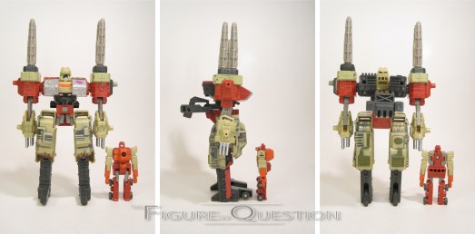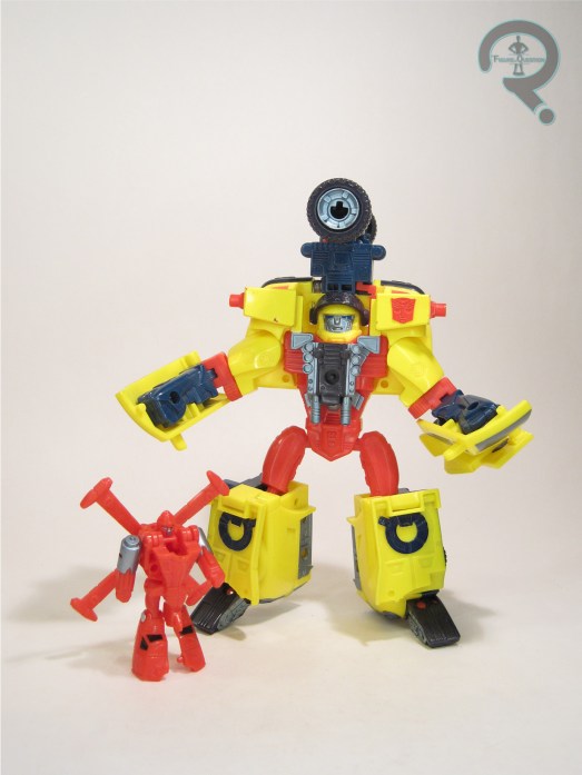 Hot Shot’s alt-mode is the same stylized sports car as his original release. The transformation scheme is a bit more involved, as expected, but it’s not too terribly hard to figure it out. In car mode, he gets fancy clear windows, and he even has a Minicon port, a very pleasant change from Starscream. As with the “axlezooka” for the robot mode, Hot Shot’s vehicle mode includes a non-spring-loaded version of the original’s “driving claws.” Sure, it’s just flipping the feet out, but that’s all the original did, so, you know.