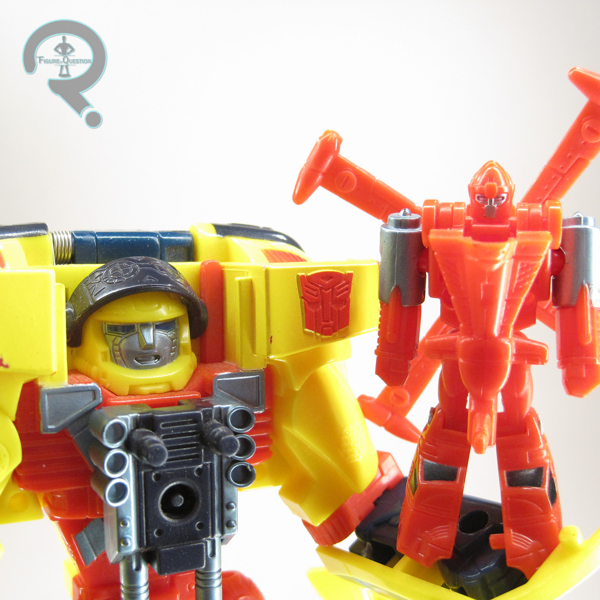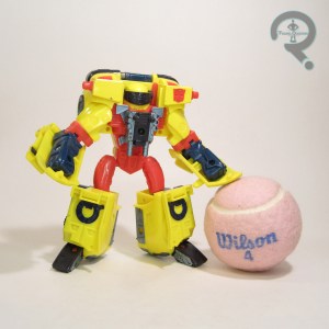 Hey, remember back in February, when I was talking about Transformers: Armada? Cool. Well, um, I’m gonna talk about it again. So, there. Specifically, I’m talking about Hot Shot, a character created for Armada, who was specifically designed to fill a role somewhere between Bumblebee and Hot Rod. Which makes sense, because he totally looks like a cross between those two. Well, at least in his original incarnation. Which is the one I’m looking right now!
