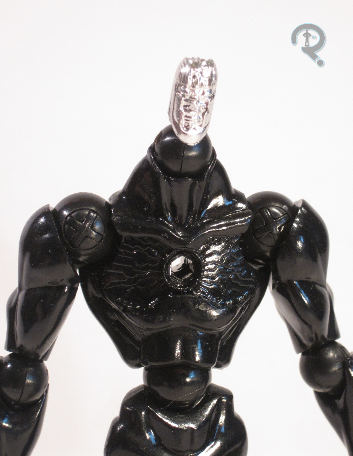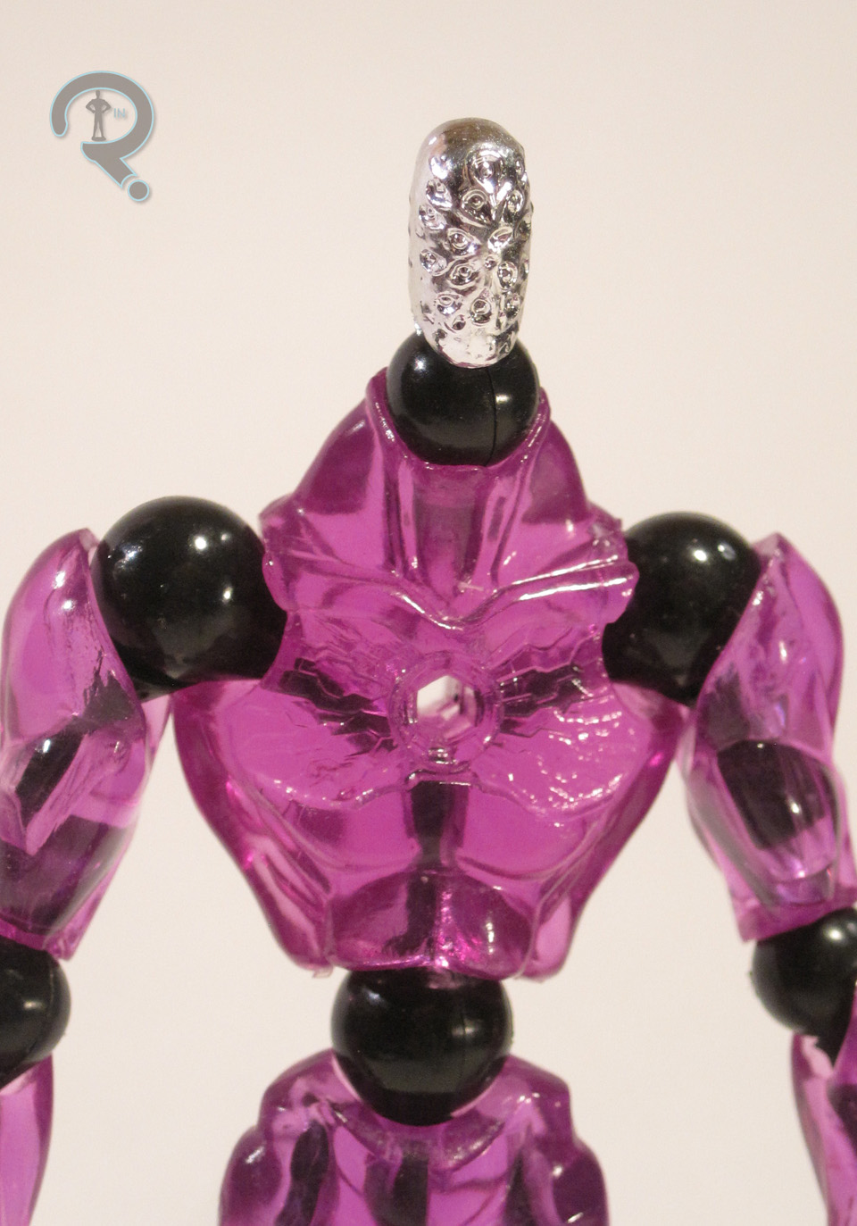 of elegance, while also hammering home that this dude’s a bad guy. I like how he’s pretty much exclusively built on v-shapes. V, the evilest of the letters. Also, while his face is devoid of any eyes, his chest piece has this cool central eye motif, which really fits with the whole “Galactic Sorcerer” thing. Xo’s head continues the “helmet” trend of the last two figures, the outer head can be removed, revealing a smaller inner head. Xo’s isn’t too far off from Zain’s, but he’s got a bunch more “eyes” and a whole lot less symmetry to them, which is effectively creepy. Following the trend of the first three figures in the line, the Jarknoids each featured a character specific set of add-on armored pieces. As Mr. A’s evil counterpart, Xo features a set of large, bio-mechanical feet, which can be swapped out for the regular feet. They add a fair bit of height, and help to make Xo that much more imposing. In