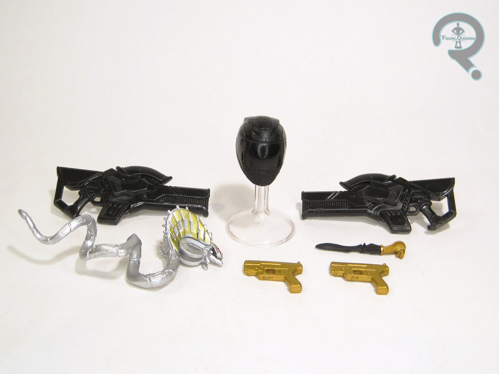 The Alley Viper is this set’s army builder. Admittedly, not the most practical way to release such a figure, but don’t let that color your opinion of the figure. He stands 3 ¾ inches tall and has 22 points of articulation. Most of his basic body comes from either the basic Resolute Cobra Trooper or the previously released samurai version of Storm Shadow. He has a new head, helmet, goggles, and chest armor. These pieces make a world of difference, making the Alley Viper look like a brand new figure. The sculpting it really great here, with lots of little texture work, especially on the torso piece. The paint on the figure is clean, and looks great all around. The Alley Viper includes two large rifles, and a display stand.