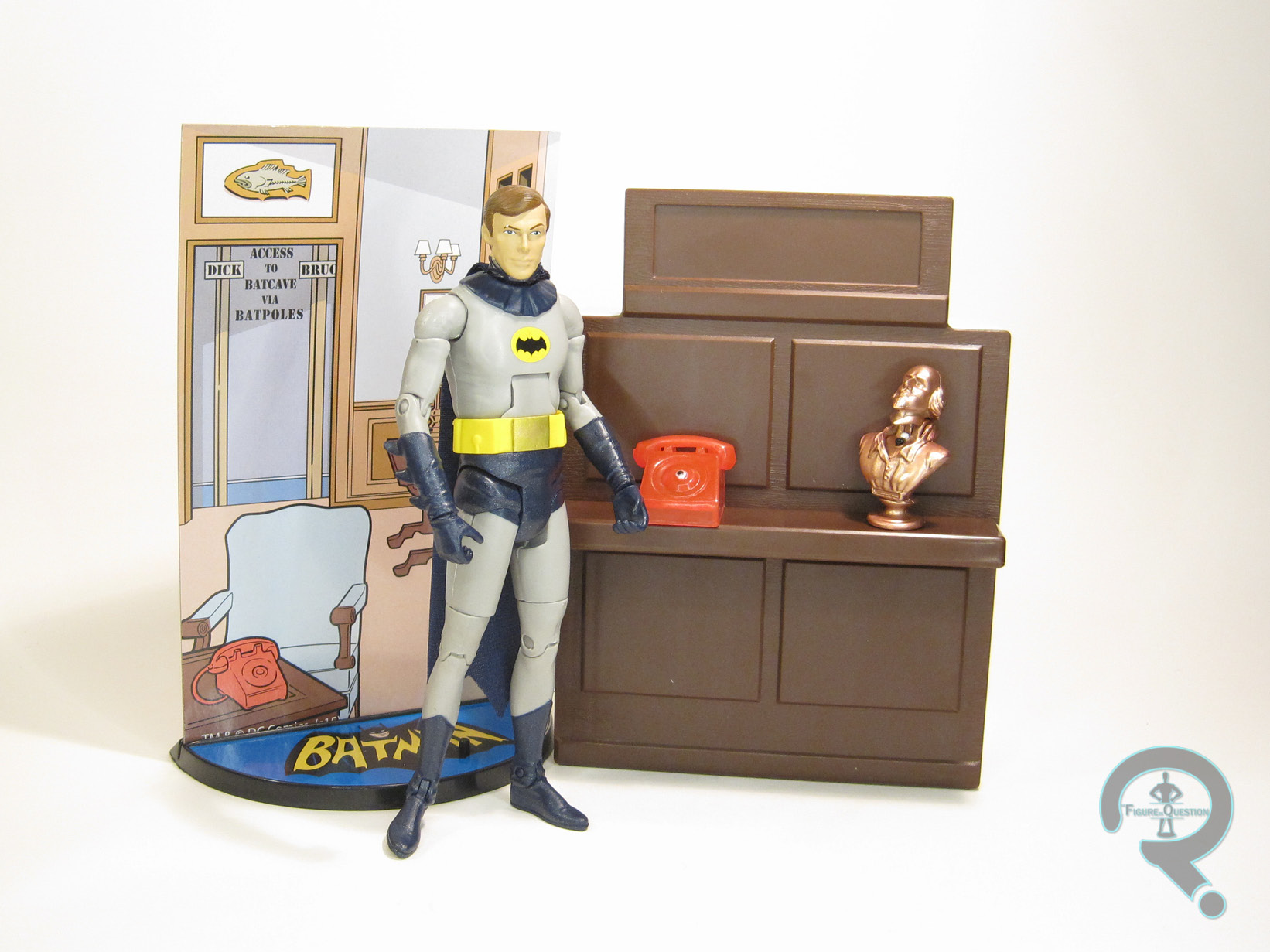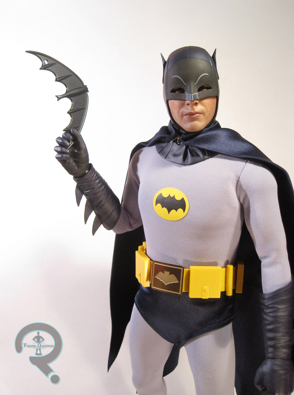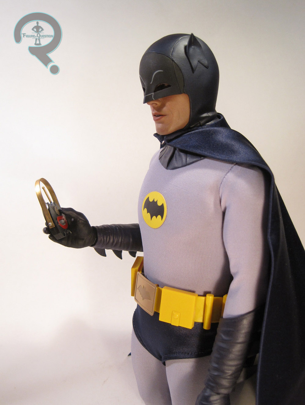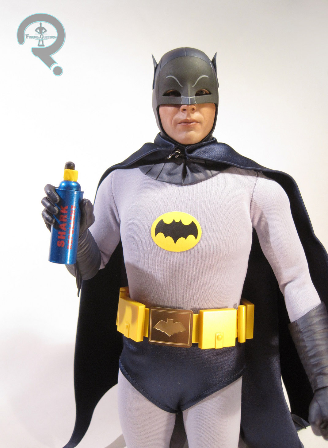 Batman is part of Hot Toys’ Movie Masterpiece Series, and he’s figure MMS 218 in that particular line. Batman is roughly 12 inches in height and, according to the Sideshow website, he has 30 points of articulation. The figure is based on Adam West’s portrayal of Batman in the 60s TV show and movie. Going by the accessories, this is specifically based on the 1966 movie.