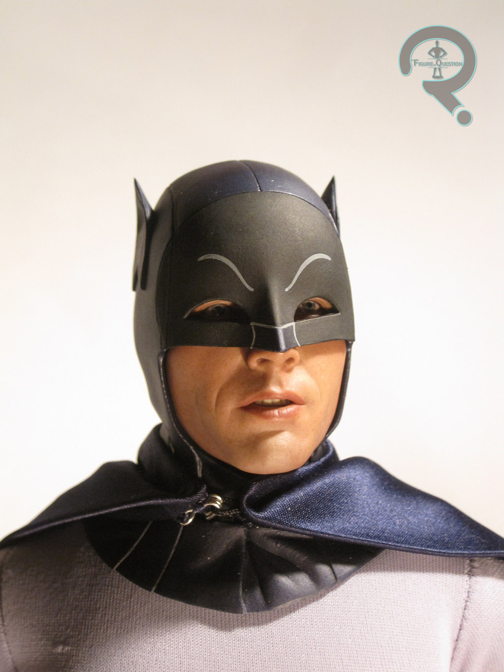 Let’s kick things off by looking at the head. Simply put, the head sculpt is phenomenal work. The cowl is an expert recreation of the one worn by West in the movie, down to the slightly droopy ears, and the underlying face is the spitting image of Adam West. The use of separate molded pieces makes it so that the figure