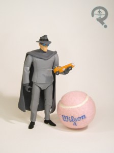 Grey Ghost is figure 42 in the Batman: Animated line, and is part of what is looking like it may be the final assortment of single-carded figures.  He’s based on the character’s appearance in his showcase episode “Beware the Grey Ghost.”  The figure stands 6 1/2 inches tall and he has 29 points of articulation.  Right off the bat, this figure is notable for deviating from the line’s (admittedly a little inconsistent) articulation scheme.  The neck is changed from a restricted ball joint to a universal joint, the hips are now a ball and disk construction with an overlay piece for the pelvis, he has double knee joints, and his ankles follow the current Legends rocker set-up.  The biggest upside to this is an abundance of lateral movement on the legs, which removes the tendency towards pigeon-toes for these figures and also makes him a lot easier to keep standing. There are still some areas where movement could be improved (he still has nothing mid-torso), but this is a great step forward.  This line was sold on show accuracy, and Grey Ghost’s sculpt follows suit.  It’s a pretty clean recreation, and the articulation is suitably worked in without breaking things up too badly.  In terms of paint work, Grey Ghost is fairly consistent with earlier offerings.  This definitely makes the paint the weakest aspect of the figure, but it’s not terrible.  There are a few spots that could stand to be just a touch cleaner.  Grey Ghost is packed with his pistol (plus an extra hand for holding it), one of the Mad Bomber’s toy cars, an extra hand holding a pen, and a copy of the Grey Ghost VHS he’s seen signing at the end of the episode.  While it’s a little sad that the stands were cut, I do like the return to episode specific extras a lot.
