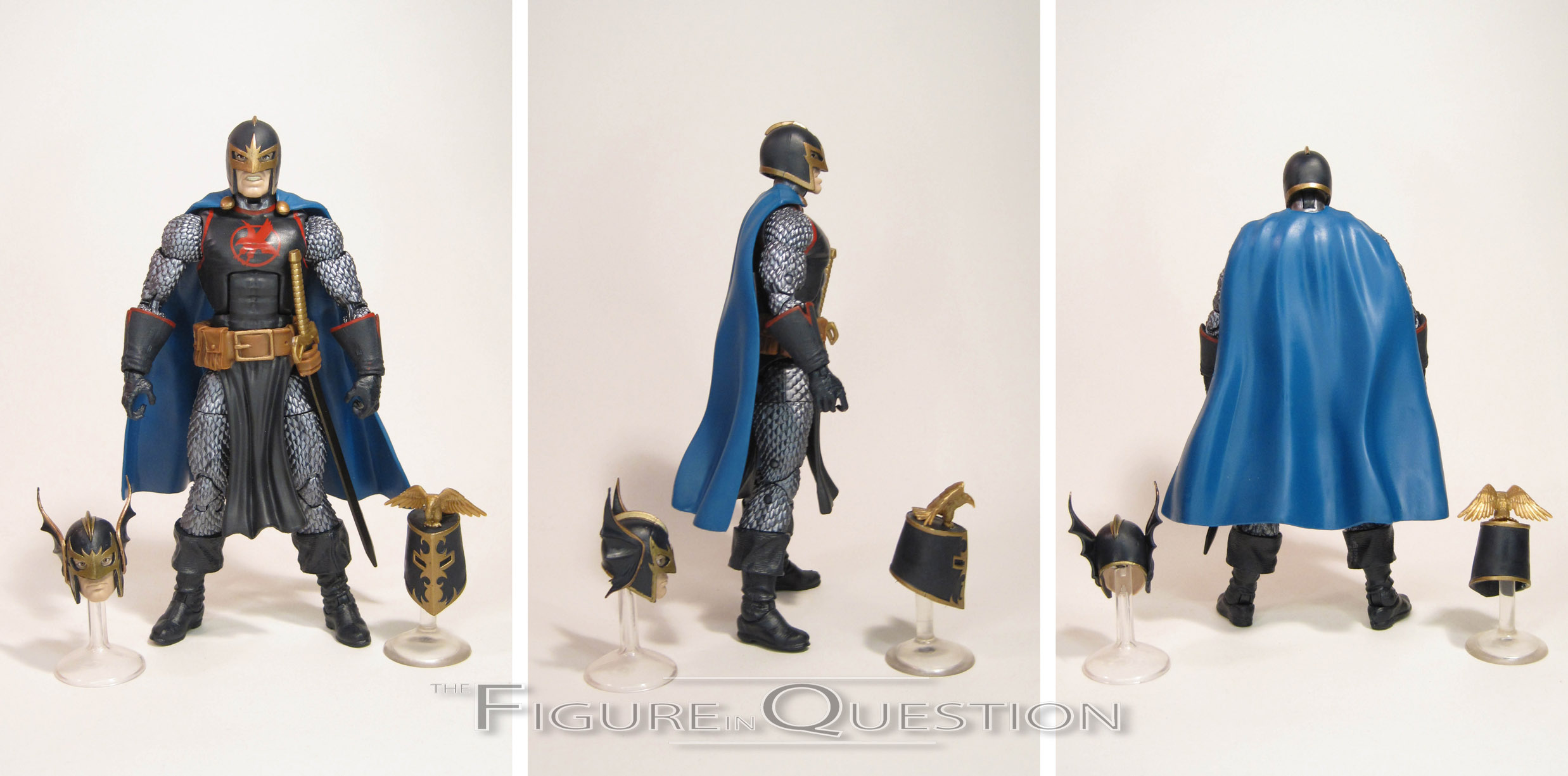 look from the comics, with the new parts in particular really selling the whole thing. There’s some slight quirks to some of the older parts, with the legs in particular showing a degree of warping. Black Knight’s color work is similar to his last release, but has a degree more polish to it. The face is now printed, which adds an extra lifelike quality, as well as giving him his ’90s era stubble, and the rest of the line-work is just overall a bit cleaner. Black Knight is packed with two sets of hands (fists and gripping), and his Neural sword, which replaced the Ebony Blade during this era of the comics.
