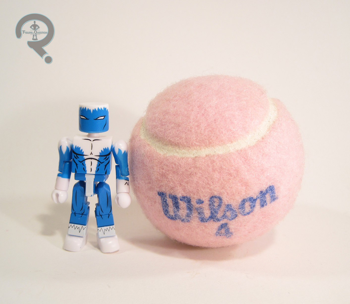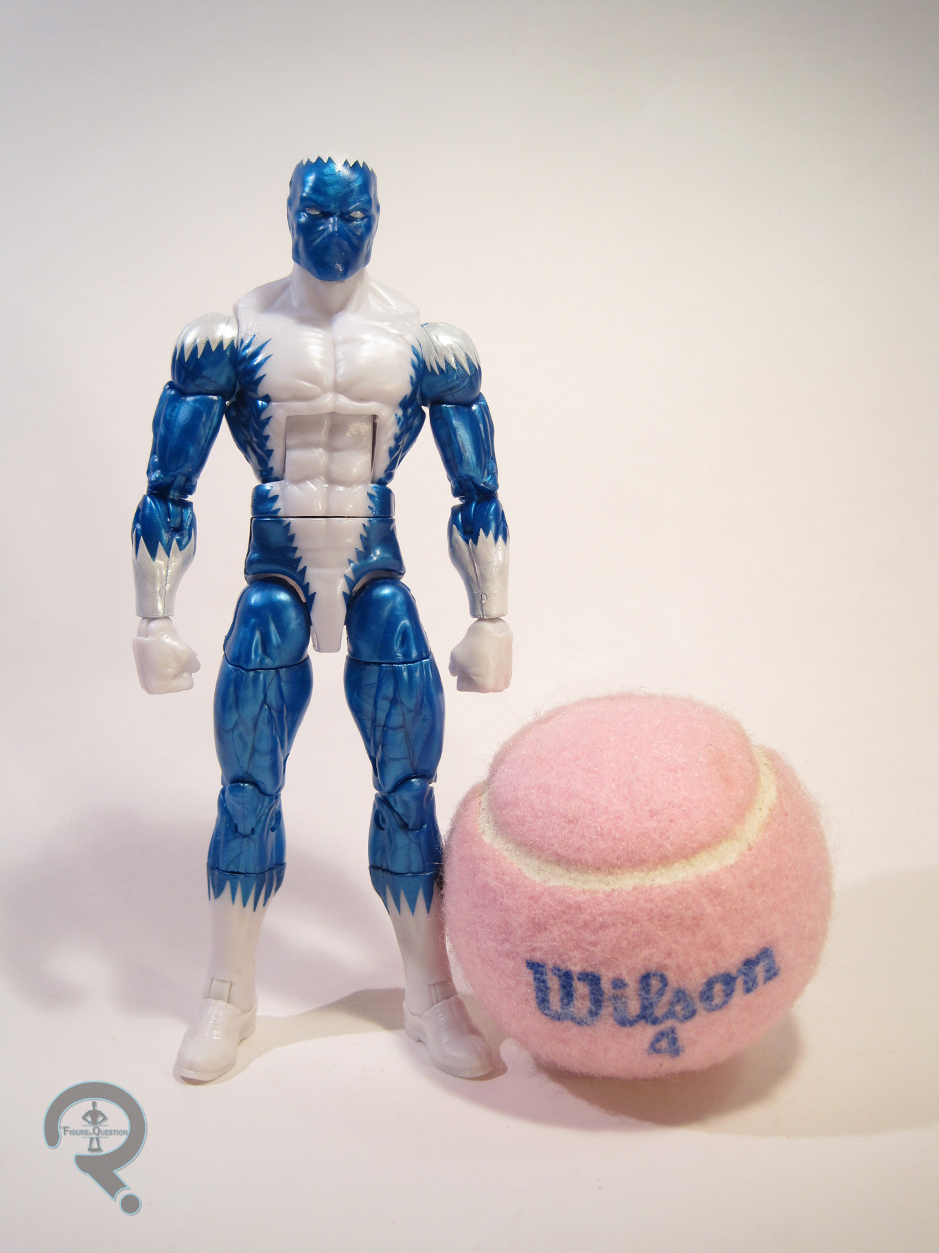 kinda looks like he has two left feet? Guess he’s not much of a dancer. His paint work is limited to a bunch of white on blue plastic. It honestly works pretty well, though, so it’s pretty striking. Blizzard is packed with an ice glove attachment for his right hand, an ice cane, and an identification card. Generally, it’s a nice selection of extras. He also gets an action feature; much like a number of the earlier Wolverine figures, he has a little thumb-hold on his back, so you can move him at the waist, which will swing his arms up and down.