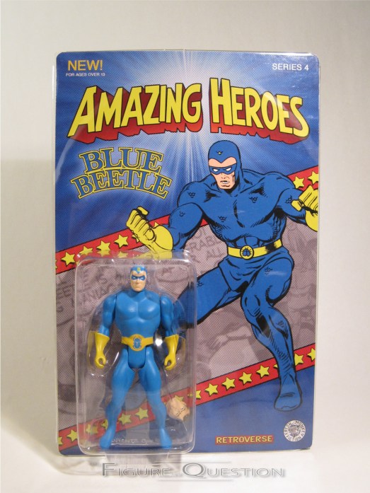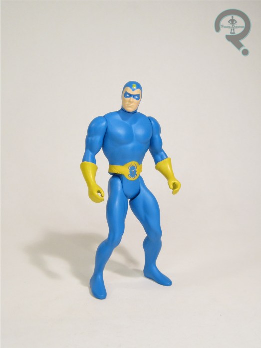 In the summer of 2014, I backed a good number of action figure-centered Kickstarters, as I was trying to really expand my reviewing options, as well as my reviewing foot print out in that crazy online world.  A pair of the Kickstarters that I backed were for Fresh Monkey Fiction’s Amazing Heroes line, which was devoted to producing figures of some more obscure, largely public domain super heroes.  After running two successful Kickstarter campaigns to get us nine figures to start things out, Fresh Monkey has also been slowly adding more figures as they can, through other channels.  At the beginning of this year, they ran a Jumpstart campaign to get another four figures produced.  I managed to jump in for one of those, Blue Beetle, who I’ll be looking at today.