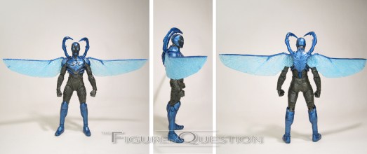 Battle Mode Blue Beetle is one of two Blue Beetle figures released in the main tie-in assortment of McFarlane’s DC Multiverse.  There’s another Blue Beetle with the arm cannon and sword, as well as a deluxe Carapax MegaFig, but I’m gonna look at “Battle Mode” Blue Beetle.  You know, the one that comes with wings and no weapons of any kind.  Like a Battle Mode.  The figure stands about 7 inches tall and he has 37 points of articulation.  His articulation scheme is the standard McFarlane set-up, with the addition of two swivels on the wings/horns….allegedly.  The wing/horn swivels aren’t actually good for much, but I’ll get to that in a moment.  There’s layers here.  The bulk of this figure’s sculpt is shared with the other Blue Beetle from the assortment.  It makes sense, since it’s always the same core suit in the movie, and he just cycles through different attachments.  Honestly, it’s even a pretty darn good sculpt.  It looks a lot like the movie suit, it has a lot of sharp detailing, and, apart from the arms being a touch too long, it has pretty solid proportions.  Because it’s shared with the other figure, you can also still remove the left forearm, allowing you to swap in the other figure’s cannon arm, if you so choose.  Heck, it even moves pretty well.  The core body, that is.  It’s McFarlane, though, so you’re all waiting for this to take a turn, right?  Well, here’s where that happens.  You know how this figure has Beetle’s wing attachments?  And they’re removable, even?  Yeah, well the horns, which are always visible on the back of the suit when its powered up, are attached to the wings.  So, you can’t give him the horns without the wings…you know, the way he looks for most of the movie’s runtime.  Also, because of the angle that the horns are attached to the wings, you also can’t have the wings posed in anything but a straight out angle, otherwise the horns get caught on each other and bump into his head.  This figure does at least *have* the horns, which is more than can be said for the other figure, which just lacks them outright.  If they’d just been sculpted onto the actual backpack piece, there’d be no issue.  Heck, I’d have settled for a separate set of horn pieces to swap out for the wings, since they’re easily removed.  But, nope, we just get the ones attached to the wings.  That’s annoying.  Moving back to better things, the paint work on this figure is also pretty good.  The base colors are clean, and I love that metallic blue.  Then there’s a bunch of accenting which gives him a little more wear and tear, while also still not going too overboard.  I can certainly appreciate that.  Beetle is packed with six different hands (a pair of fists, a right open gesture, a right pointing, a left thumbs up, and a left peace sign), a standard display stand, and a card.  The hands are fantastic and I love having them.  The stand is surprising because it’s not a flight stand, which seems odd, but it’s better than nothing.  And the card is infuriating because it shows Jaime with the horns but no wings.  You know, the way this figure can never be displayed.