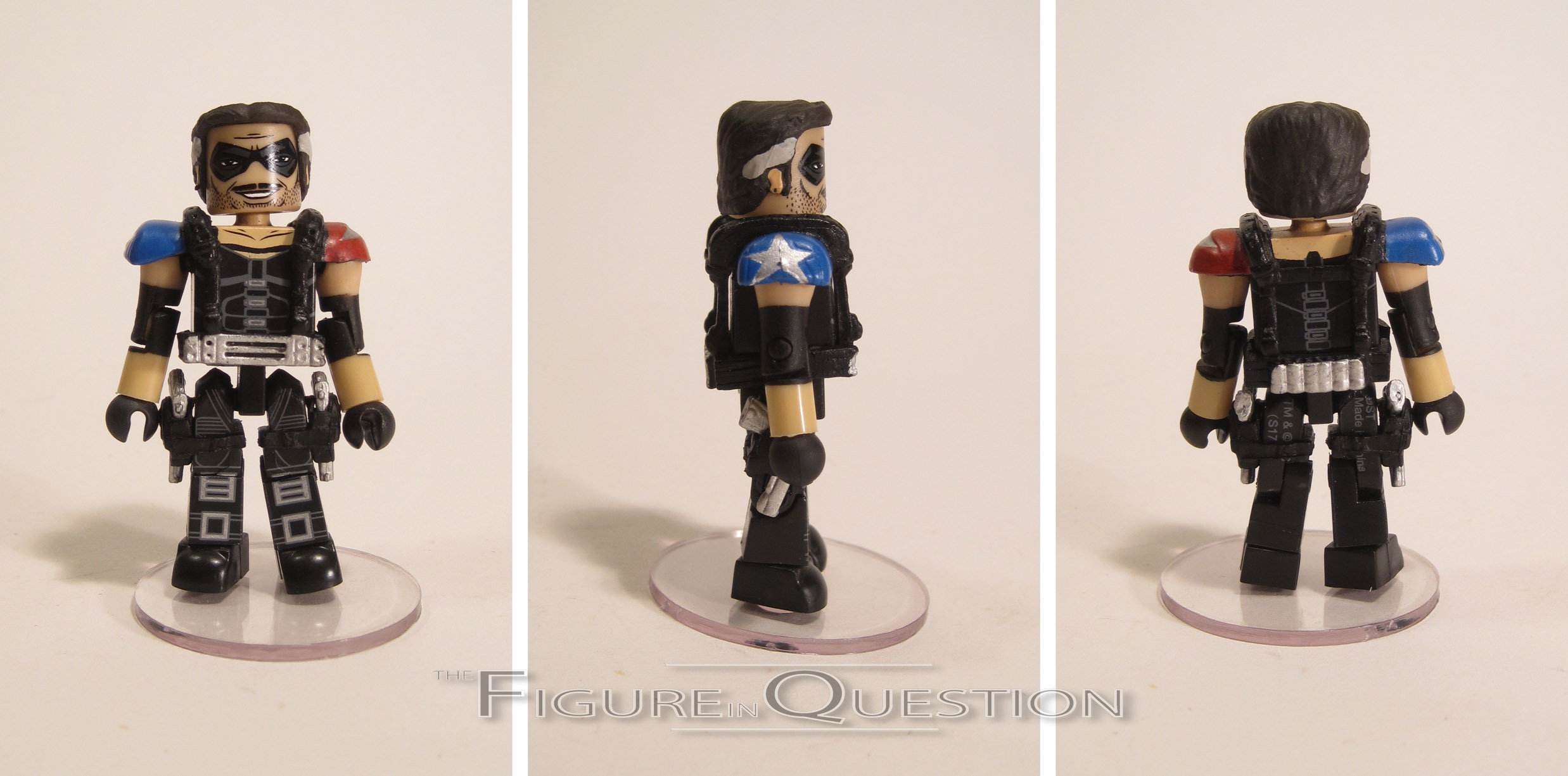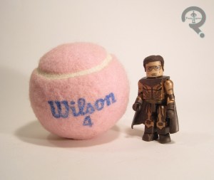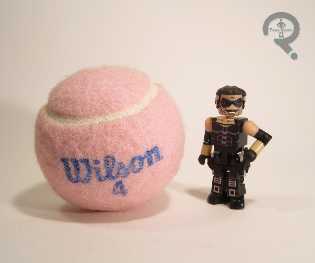 Though he may be dead at the story’s start, the Comedian is perhaps Watchmen‘s most central figure. He was originally supposed be the Charlton Comics character “Peace Maker,” before DC forced the change. Shame, since it would have been perhaps the only noteworthy thing ever attached to the character. Oh well. Comedian’s look was largely unchanged when going from book to movie, so this guy will work pretty well as either version of the character. The figure stands roughly 2 1/4 inches tall and has the standard 14 points of articulation. In addition to the standard base body, Comedian has add-ons for his hair, shoulder pads/suspenders/belt, and the holsters. The holsters are the same basic pieces that have been in service since the Avengers Black Widow ‘mate, but the other two pieces are new to this figure. The new pieces are generally pretty solid additions. They could possibly have been a little sharper in terms of detail, but the work here is still pretty great. In terms of paint, Comedian is pretty decent overall. The best work is on the detail lines. The face capture’s not only Jeffery Dean Morgan’s likeness, but also his cocky Comedian personality, which is pretty cool. This is obviously a slightly older Comedian, though he does seem to be using any hint of his facial scar. I guess it was pretty downplayed in the movie. The base paintwork is a little sloppier than the line work, but still fairly decent. The biggest issue with the paint is actually something that was beyond DST’s control. He lacks Comedian’s signature smiley face button, due to rights issues associated with that particular image. DST has opted to drop the button entirely, rather than giving us just the blank yellow circle that other companies have gone with. I think I might like it better when it’s just not there; less distracting. Comedian is packed with a pair of silver handguns and a clear display stand. It’s a shame he didn’t get a few more weapons, and possibly an extra head and hair piece for a younger look, but what’s included is fair.