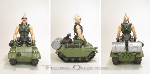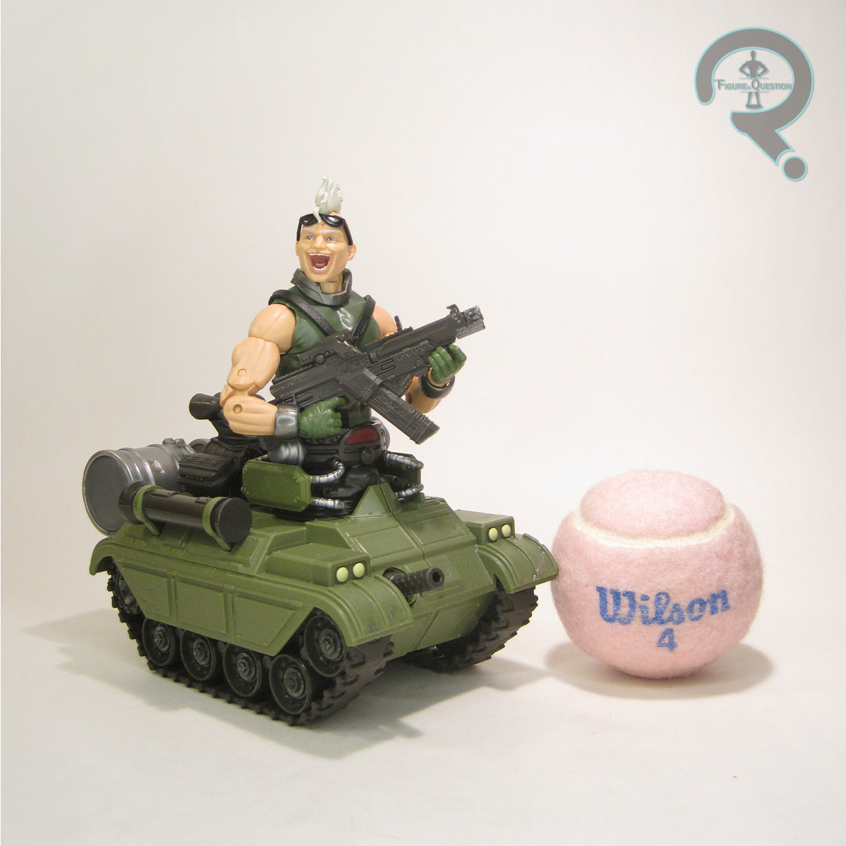 Bonebreaker is the Build-A-Figure for the titular series of Marvel Legends, assembled from the parts included with six of the seven figures in the assortment. This is Bonebreaker’s second time in figure form, following up on the original Toy Biz one. Hey, it’s better than all of the rest of his team, so that certainly counts for something. The figure is about 6 1/2 inches tall and has 18 points of articulation, as well as a moving cannon and back-flap on the tank portion of the figure. The proper articulation is confined to the upper half, which is making use of the upper portion of the Spider-UK body. He also gets the bands from Captain Marvel, as well as a new head, overlay for the web gear and collar piece, and, of course, the tank half. The new pieces are actually pretty impressive. The head’s got a ton of character, between both the hair style and the crazy look on his face. I especially like the hinged sunglasses, which add a lot of options for the character’s expressions. The tank section is generally pretty solid as well. The detailing is sharp and well-handled technically, and I really dig the dings and scratches. The assembly is also pretty solid, considering how its got to be disassembled for the purposes of the Build-A-Figure set-up. Bonebreaker’s color work is on the drab side, as expected, but there’s a lot going on, which keeps it interesting. Bonebreaker is packed with two sets of hands (fists and gripping), as well as an assault rifle. It covers everything he could need, and then some, so that’s a plus.
