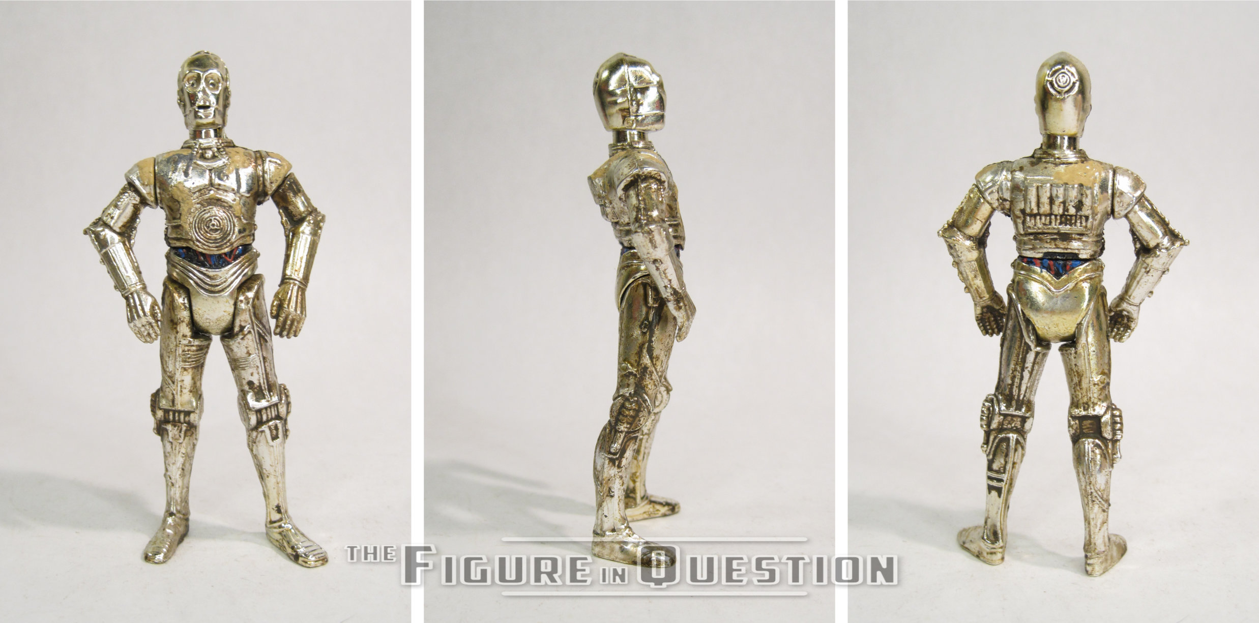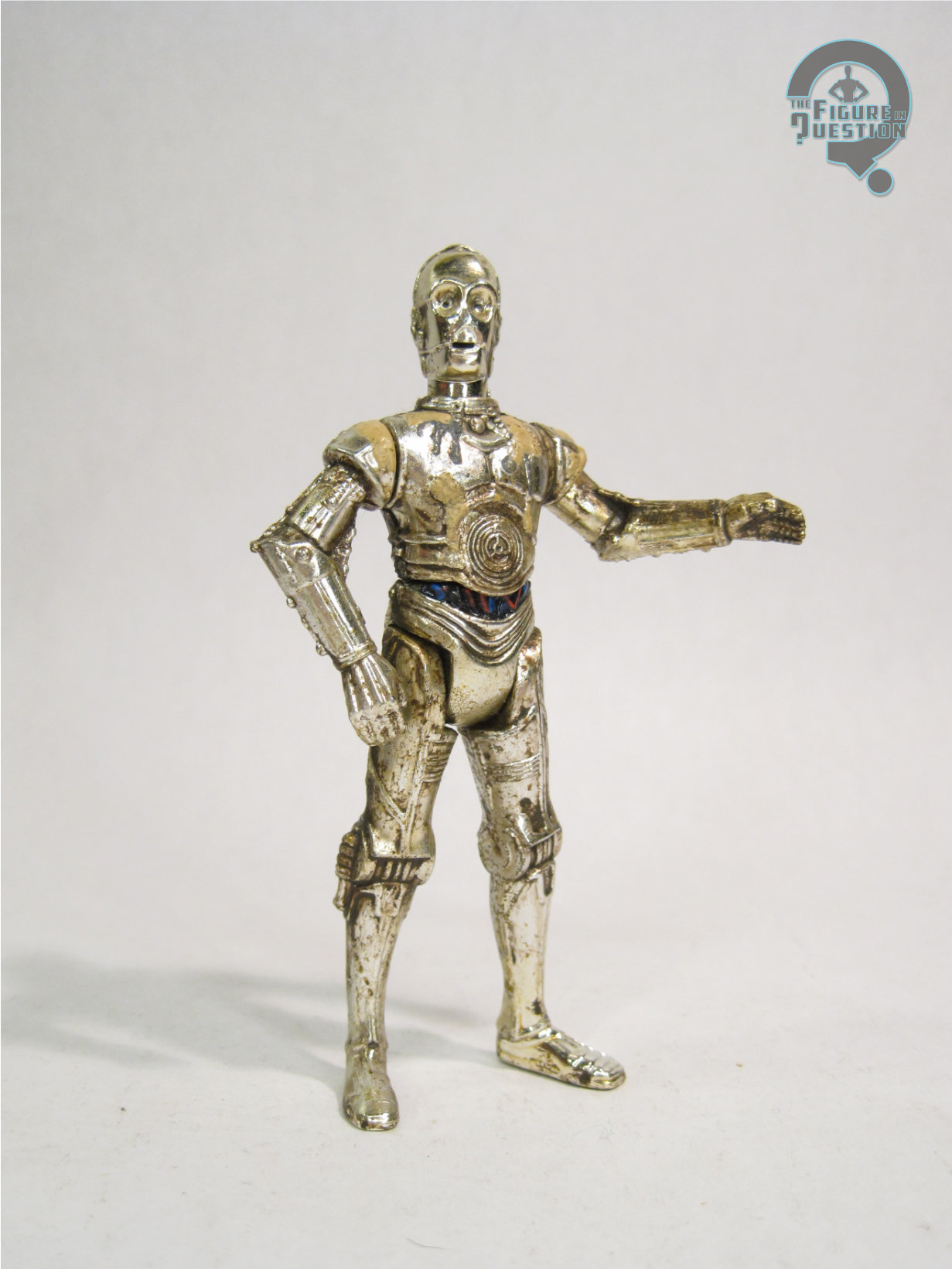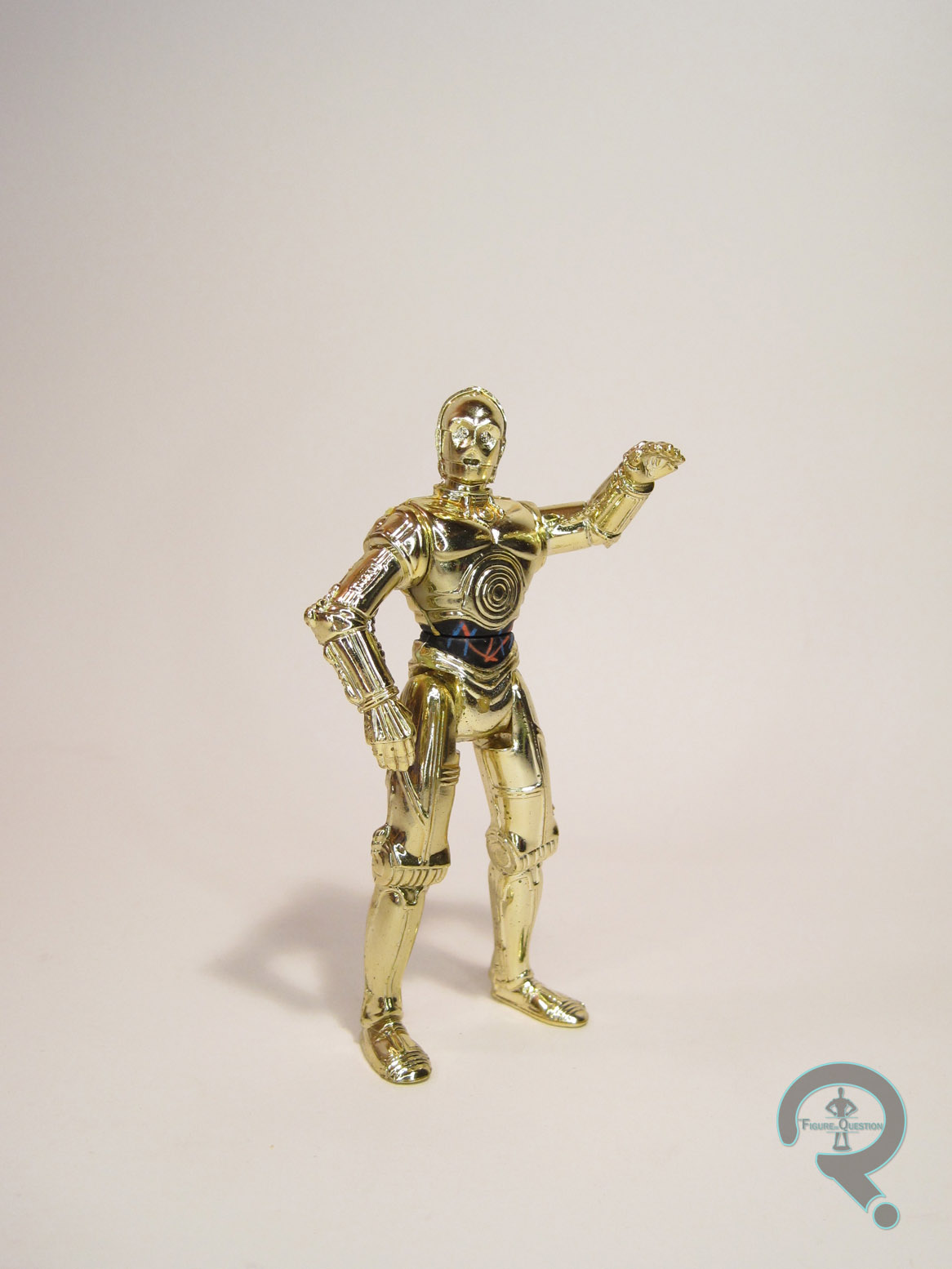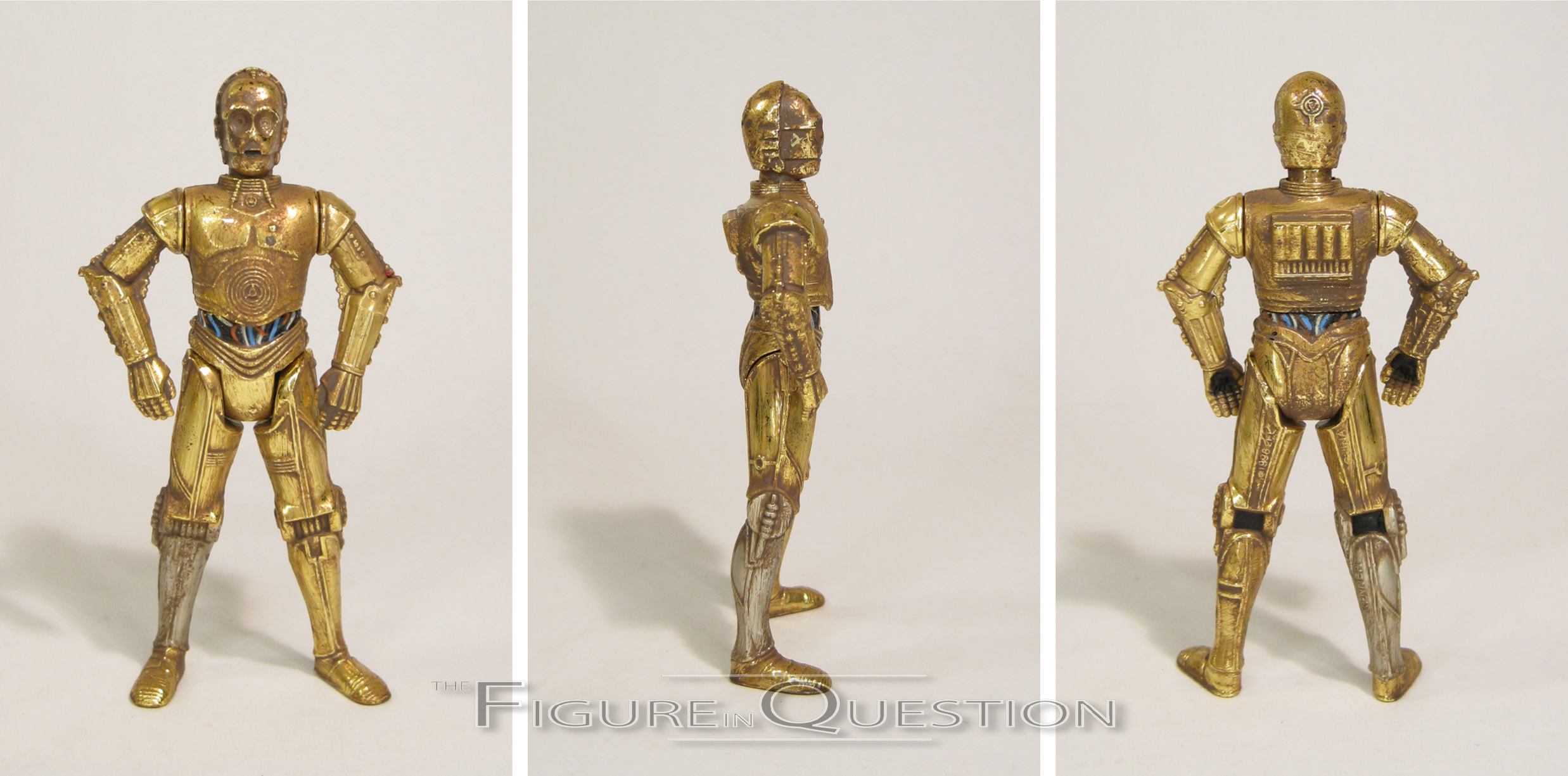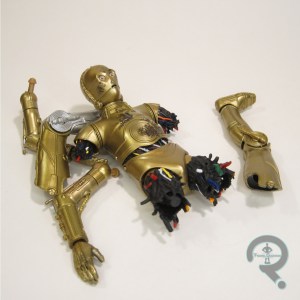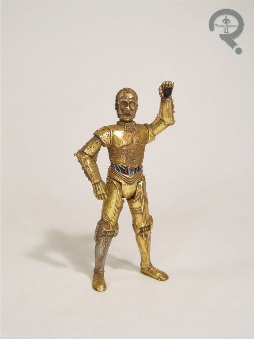C-3PO with Removable Arm was released as part of the “Flashback Photo” set of Power of the Force, with the second batch go figures that hit in 1999, just before the proper Episode I line launched. 3PO continued the set’s heavy focus on A New Hope, as he’s based on his appearance in the movie just after the Tusken Raider attack. The figure stands just under 3 3/4 inches tall and he has 6 points of articulation. His sculpt is unique, but admittedly rather similar to the other later run 3POs from the line. This one, however, does have the odd quirk of his weirdly elongated head. It seems strange that after getting it more or less right so many other times, that this one’s so…odd. Otherwise, it’s a decent enough sculpt, with plenty of detailing going into it all. The left arm is designed for removal, mimicking his loss of it in the scene he’s referencing, and the articulation’s a little bit different to accommodate this. Per the usual treatment, 3PO is vac-metalized, but he goes a bit further on top of that, getting a fairly extensive amount of paint accenting for the dirt and sand he builds up while on Tatooine. C-3PO is packed with only his flashback photo, showing 3PO from both the original film and Episode I.