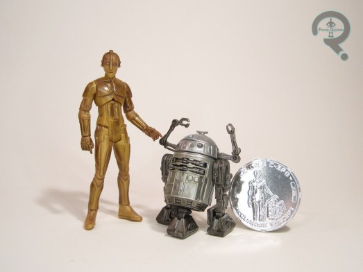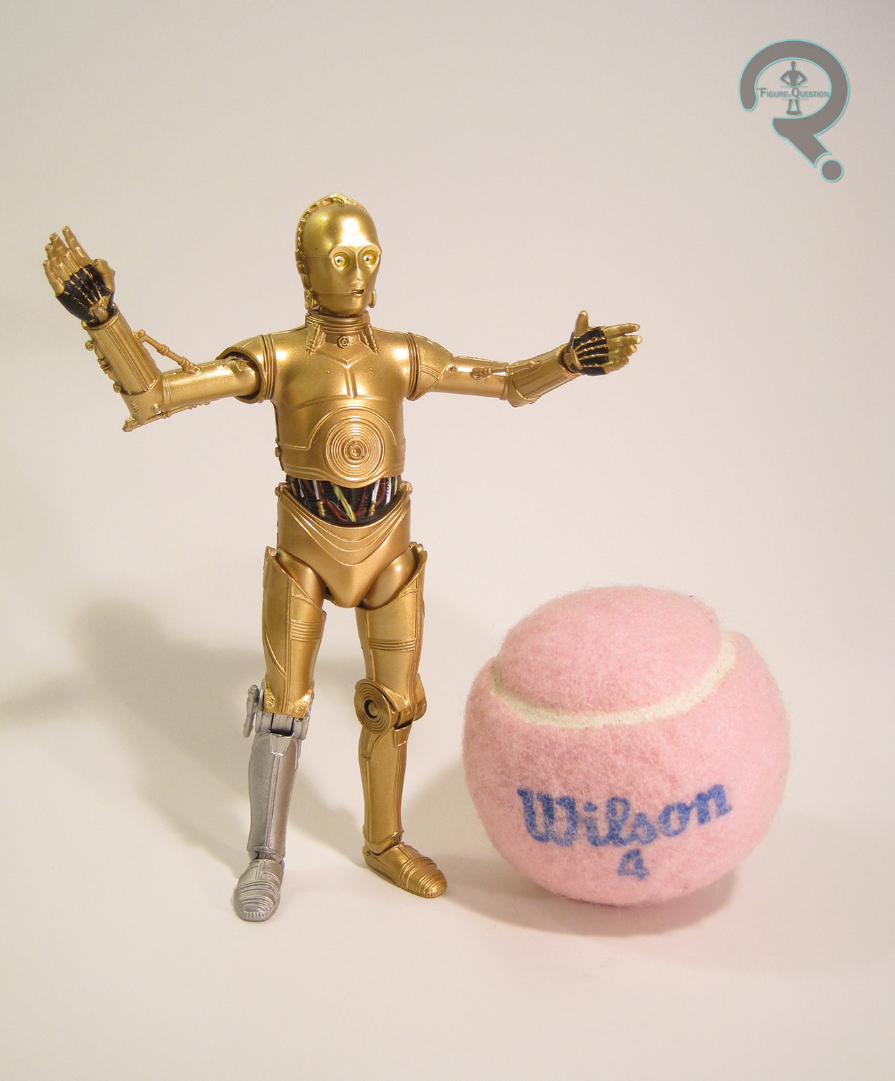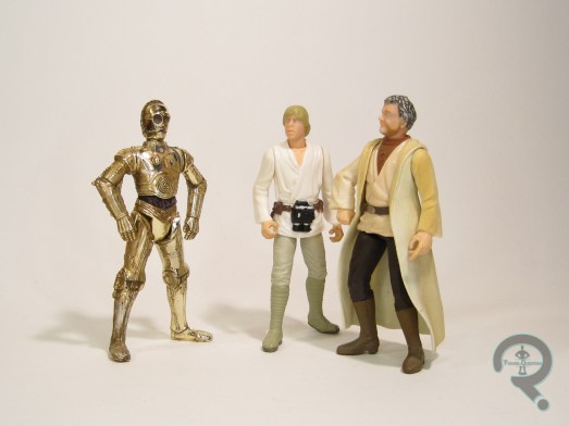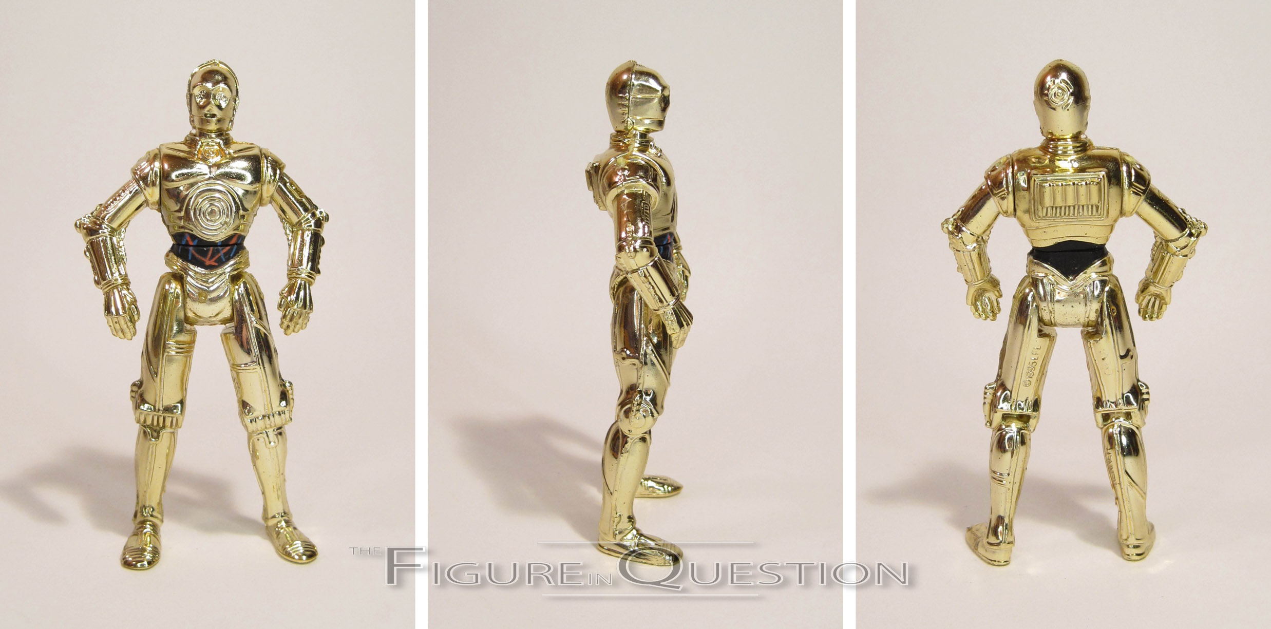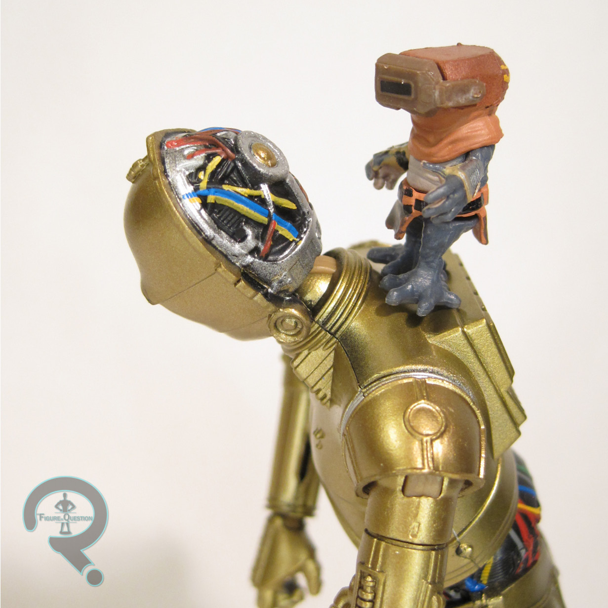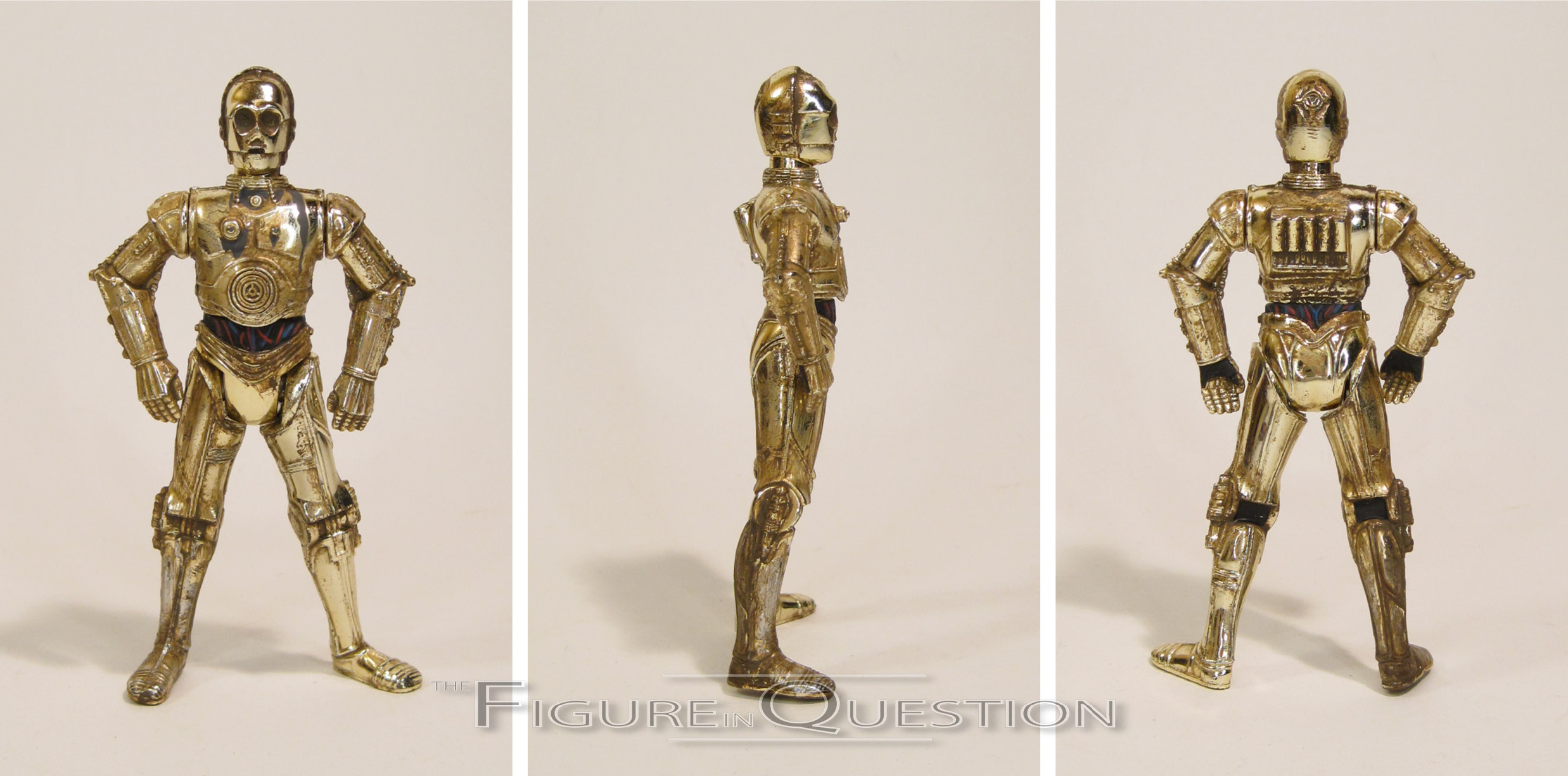 C-3PO with Removable Arm was released as part of the “Flashback Photo” set of Power of the Force, with the second batch go figures that hit in 1999, just before the proper Episode I line launched. 3PO continued the set’s heavy focus on A New Hope, as he’s based on his appearance in the movie just after the Tusken Raider attack. The figure stands just under 3 3/4 inches tall and he has 6 points of articulation. His sculpt is unique, but admittedly rather similar to the other later run 3POs from the line. This one, however, does have the odd quirk of his weirdly elongated head. It seems strange that after getting it more or less right so many other times, that this one’s so…odd. Otherwise, it’s a decent enough sculpt, with plenty of detailing going into it all. The left arm is designed for removal, mimicking his loss of it in the scene he’s referencing, and the articulation’s a little bit different to accommodate this. Per the usual treatment, 3PO is vac-metalized, but he goes a bit further on top of that, getting a fairly extensive amount of paint accenting for the dirt and sand he builds up while on Tatooine. C-3PO is packed with only his flashback photo, showing 3PO from both the original film and Episode I.