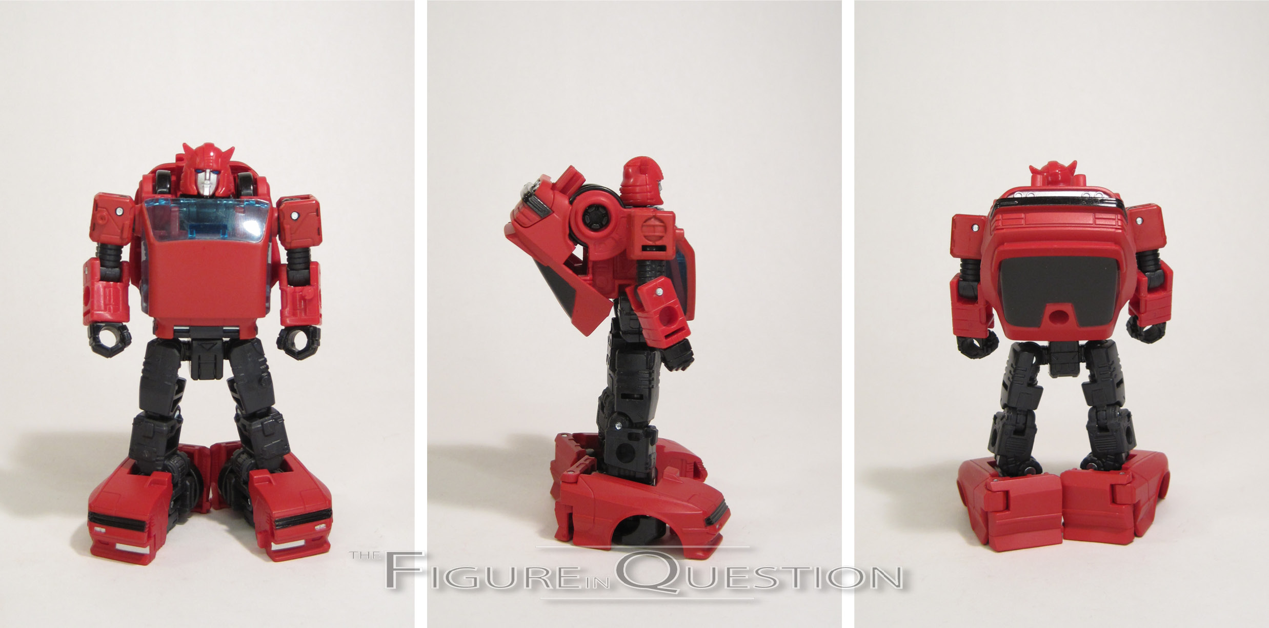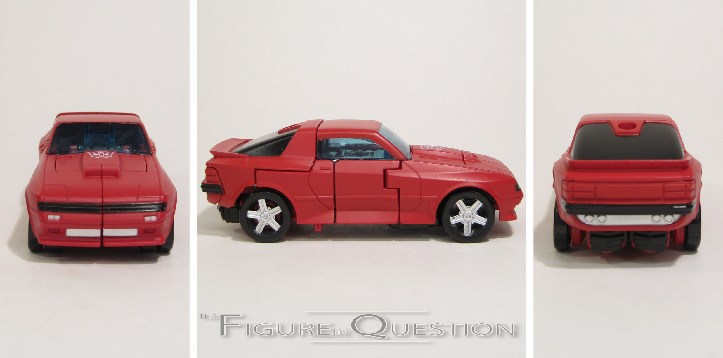 I’m good with the basic look, so those are staying on the sheet for me. Like his original, this guy turns into a little tiny car. The transformation’s pretty easy, but at the same time not too simple. On mine, the hood doesn’t *quite* seat against the windshield the way it should.