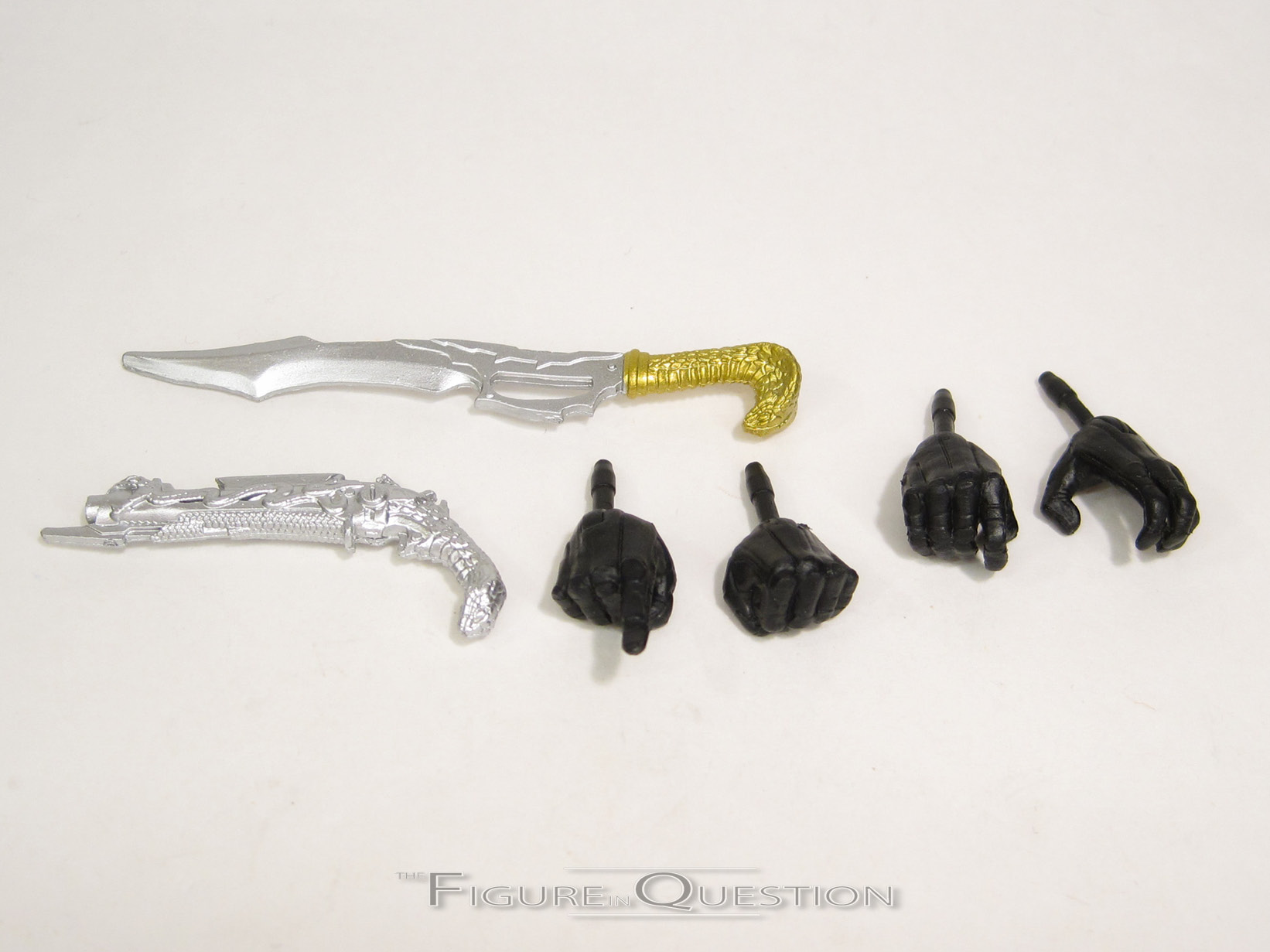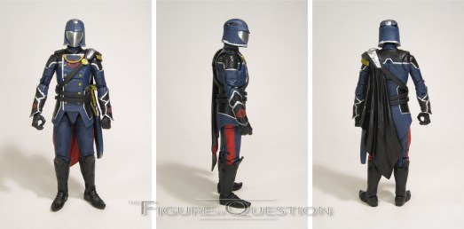 Cobra Commander is figure 06 in the G.I. Joe: Classified Series line-up, and heads up the second main release assortment of the line, which wound up being the third assortment at retail if you count the Target stuff…look, let’s not think about it too much, okay?  The figure stands 6 inches tall and he has 31 points of articulation.  He’s a little bit more restricted than some of the other figures in the line, missing out on the drop hips and the ball jointed waist in particular.  While it’s a little bit of a bummer, it’s not the end of the world, since the Commander’s rarely as agile as a lot of the other characters in the franchise, and what he has still allows him to pull of a lot of really good poses for the character.  Cobra Commander’s design is definitely a take on his original V1 battle-helmeted design, which has always been my preferred lineage for redesigns of the Commander.  This figure follows in the footsteps of both the Valor Vs Venom and Resolute takes on this particular look, taking the slightly more utilitarian design of the original figure and injecting some of the regal flair that would become so integral to the character.  On the whole, I think the design works, but I’ll also freely admit that there’s a degree of overdesigning going on with this guy, especially when compared to others in the line.  There are areas where I think simplifying things just a touch would help sell the design.  In particular, I think there’s just a little too much going on with the gloves, and the shoulder pad/half-cape also seems a little bit too involved.  I think this guy’s similarities to the Resolute version might be hurting him in that regard, because that design’s pretty cleanly handled, and is kind of the gold standard for Cobra Commander re-designs.  This one is quite far from being bad, mind you, and I do still really like a lot about it.  The paint work on this guy takes the Commander’s usual color scheme and slightly dials it back, going for an overall more subdued appearance, at least as far as the blues are considered.  As with the overall design on the sculpt, there’s perhaps a little too much going on with some of the color work, but as a whole it works, and it’s certainly got the appropriate vibe behind it.  Cobra Commander is packed with two sets of hands, one pointing/fist combo, and one gripping/open gesture combo, as well as a flintlock-style gun and a small sword.  The hands are definitely great for getting some expressive poses out of him, but I find the weapons once again fall victim to the dreaded over designing.