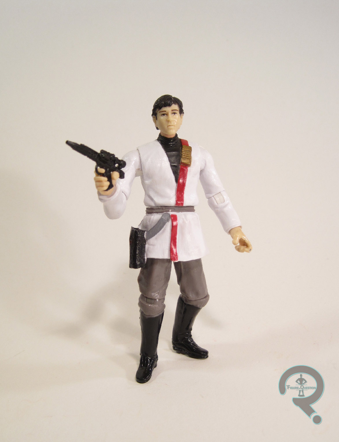Rom Mohc is a character with a decent chunk of appearances, in a number of differing mediums. He first appeared as the antagonist of the Dark Forces video game. Subsequent appearances have been related to that, by and large. Him getting a figure isn’t that odd, but it being part of a set based on “Sand Blasted” is somewhat strange, given that he only appears in about 3 panels of the story at the very beginning, and he’s almost completely divorced from everything else that’s going on. But, he’s here nonetheless. The figure stands about 3 3/4 inches tall and he has 14 paint of articulation. Despite technically having more articulation than his pack-mate, he’s much stiffer, and way more limited in posability. The figure is largely re-used, with his upper torso and arms coming from the Revenge of the Sith Tarkin (which also served as the basis for the previously reviewed Comic Pack Tarkin) and his legs coming from Janek Sunber. He gets a new head to top it all off. While the actual quality of the pieces used isn’t bad, they don’t add up to a figure that looks much of anything like any of Mohc’s appearances; certainly not the comic that this guy was actually supposed to be based on. A lot of it comes from the re-used body, which just doesn’t have the right build for Mohc. All of the available Imperial officer bodies were on the skinny side, so there’s not much Hasbro could have done, I guess. The paint on Mohc is decent enough. It’s not terribly exciting, being mostly drab colors, but it gets the job done. He’s packed with a SE-14C blaster, which he has a little bit of trouble holding.