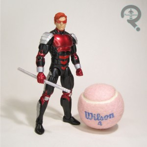 is actually pretty subdued. While other all red Daredevils have used multiple shades of red to differentiate the gloves and boots from the rest of the suit, this one makes almost everything the same shade of red, with only the eyes, logo, and belt buckle being differentiated. What’s visible of the face also gets some printed detailing, which is quite lifelike. DD is packed with two sets of hands (fists and gripping), his batons, and the dynamic zipline piece that clips between the two of them.