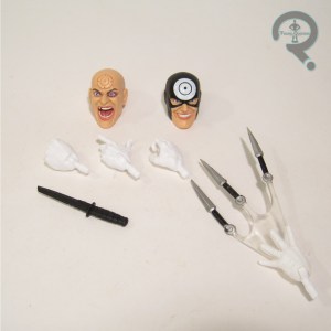 and hair sits a little high relative to the face. Her color work is alright. Lot of white. The application gets a little sloppy on the change-overs, but the printed faces look pretty nice. Elektra has two sets of hands, a pair of sais, and a katanna. The katana has black spot on blade, but other than that, the extras are pretty standard stuff.
