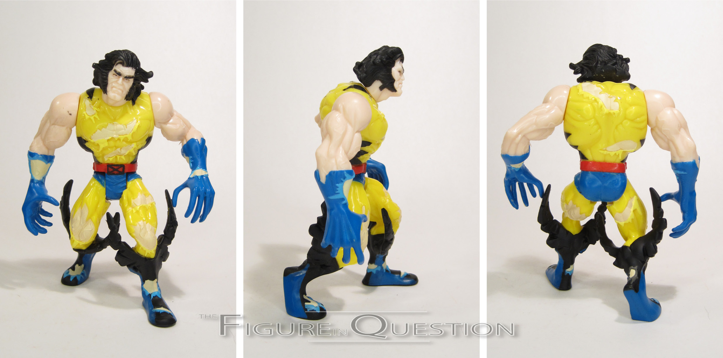 I’ve delved once before (and rather recently) into Toy Biz’s Modern Age line, which was a direct market line of figures dropped in ’99. Obviously, Wolverine is a far less obscure entry than Captain Britain, and far less in need of yet another figure, but he was very likely the figure that actually got retailers to support such a venture in the first place. In that regard, he’s actually a valid comics variant, being a new take on the Brown Costume, which hadn’t actually seen an update since the very first series of X-Men back in 1991. An update was probably a good idea, though whether this update was an improvement is perhaps more up for debate. The figure stands 4 1/2 inches tall and he has 11 points of articulation. Structurally, there’s not anything new to this guy. He’s the Ninja Wolverine with the forearms and lower legs of the Water Wars Wolverine. It all meshes together well enough, I suppose, but it means the figure is as much a caricature of Wolverine as the Ninja figure was. With the unmasked appearance, they’re clearly aiming to capture his appearance from the cover of his first solo series, but these parts are pretty far from that look stylistically. I’m also just not a huge fan of this particular head. He’s got some major underbite going on there. Wolverine’s packed with a sword and dagger…and, well, I mean, I think they’re meant to tie into his being based on the miniseries, wherein Logan travels to Japan and makes use of such things. Trouble is, they’re re-used from the Hercules and Xena lines respectively, so they don’t look even vaguely Japanese in origin. On the plus side, this guy does bring the trading card back. Nifty!