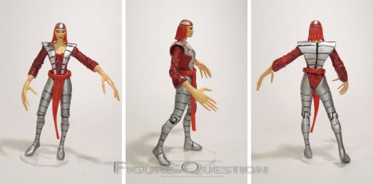 Pairing off with this Wolverine was another go at Lady Deathstrike, previously seen in the Battle Brigade assortment. She had two different decos there, but gets yet another here. She stands 5 1/4 inches tall and has 7 points of articulation. Her sculpt’s, uh, well, her sculpt’s not great. I mean, I guess it’s not terrible, but it’s definitely not great. I mean, all the important details are there, but the proportions are kinda wonky, and it’s really stiff. It’s got those v-hips, and that’s pretty much never any fun for anyone. For some reason, her forearms and hands are really soft and rubbery as well, and I’ve got no clue as to why. Perhaps they were a safety hazard if cast in hard plastic? She’s also got a radically changed color scheme, and I’m not really sure what it’s going for. She’s pretty much only had the one color scheme in the comics, so this is an odd choice. It’s also not very cleanly applied, and still feels kind of tacky in a number of places. She gets the infrared headset and forearm cannon from the original Deathstrike release, but loses out on the big gross claw. Also included in this set is a metal X-Men ring, if that’s the sort of thing you’re into.