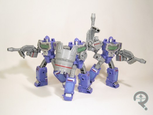 result is a pretty convincing spy drone. Soundwave was packed with his companion Laserbeak, who can either be plugged into one of the 5mm ports throughout Soundwave’s body, or folded into his chest for easy storage. The chest storage is definitely a nice throwback to the cassette set up of the vintage figures, and I really dig it. In 2013, under the revised Beast Hunters branding for Prime, Soundwave’s mold got a slight re-working, a new color scheme, and a new capture claw weapon and Ravage in place of Laserbeak. It’s a fun change-up from the initial figure, with a slightly brighter and bold color, and the new accessories are certainly a lot of fun. Not quite show-accurate, but still kind of nifty.