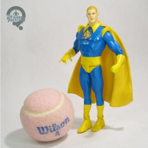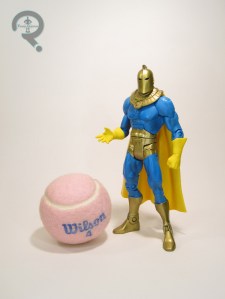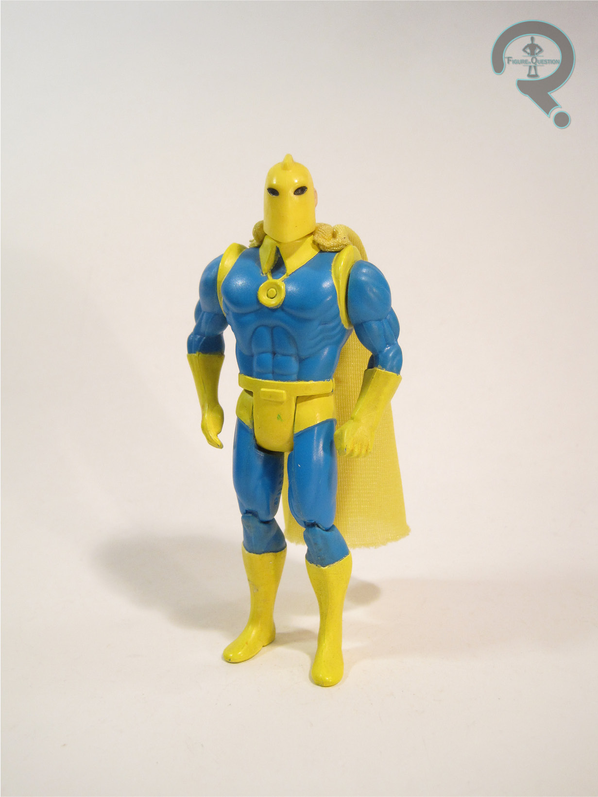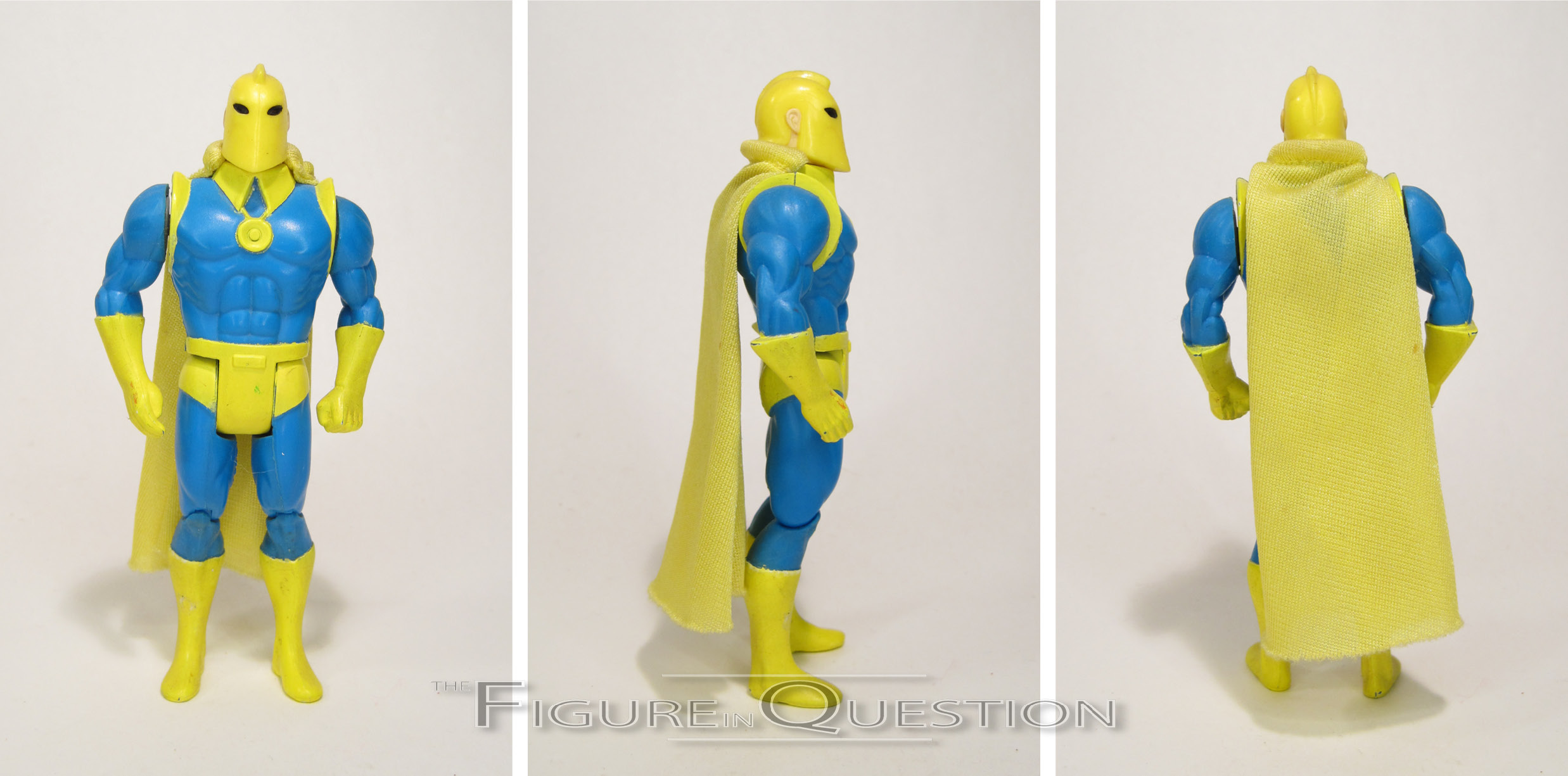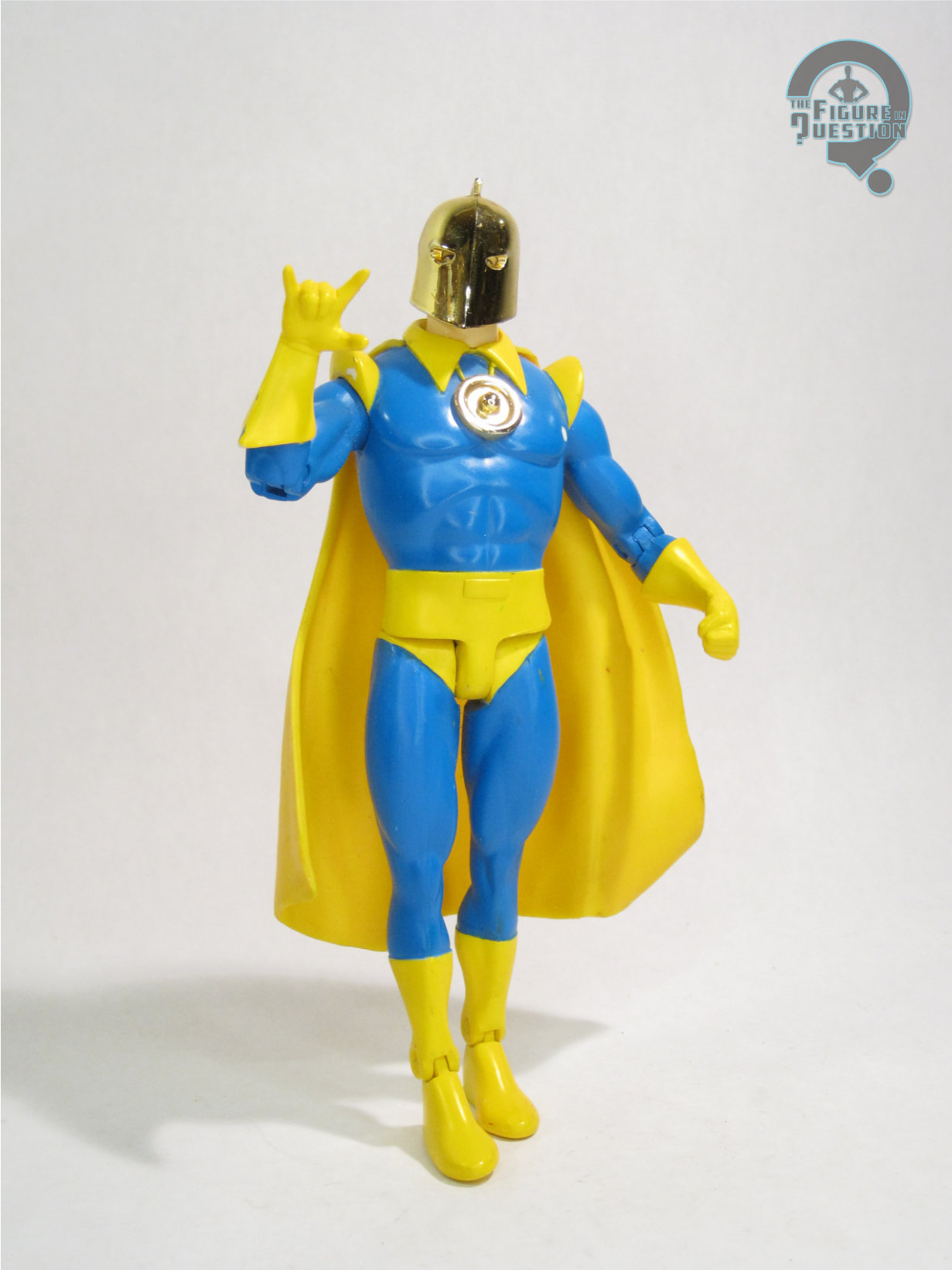 Dr. Fate was released in the Mystics, Mages, & Magicians series from DC Direct, which arrived August 16, 2000. Fate was joined by fellow JSA member Spectre, as well as Zatanna, and John Constantine. This marked Fate’s second figure, following up on his vintage Super Powers release. The figure stands just over 6 inches tall and he has 9 points of articulation. None of the early DCD figures were tremendously well articulated, but Fate’s definitely got some oddities to him. The arms are fine enough, but the legs are curiously missing knees, while still having ankles. It’s good for finding the sweet spot on balancing him, but how close the feet are together does look a little silly. His sculpt is on the basic side, generally keeping with the early years of DCD. It’s clean, and bold, and replicates the design of the character pretty well. He’s got a removable helmet, which reveals a somewhat pin-headed Kent Nelson beneath it, but it’s still a neat idea, at least in theory. The main helmet is also really nice, and a good replica of the helmet of Nabu from the comics. Did I say “main helmet”? Yes I did! There’s also an alternate helmet, showcasing Fate’s more super-hero-y helmet from the ’60s, which shows off the bottom half of his face. This is the only time its ever been done in toy form, so it’s certainly nifty! His color work is generally basic, with flat yellow and blue for the most part. The helmets and the amulet are all vac metalized, though, which….well, it’s got mixed results, I guess. It’s certainly a cool idea, but it clashes quite a bit with the flat yellow. Still, it was nice to see them try something different.