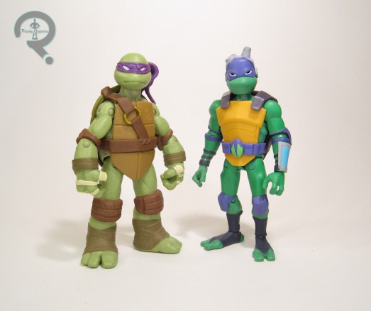 Donatello is the resident tech expert of the Turtles, as well as a fan of purple, so he pairs off pretty decently with this more recent incarnation of Batgirl. The figure stands 6 inches tall and he has 28 points of articulation. His articulation scheme follows the same set-up as the other three Turtles, so there’s a lot of range to be had, and he’s generally a little more mobile than Batgirl. The joints on my figure were a little on the looser side, more like Leonardo than like Raphael. I wasn’t super thrilled about that, but it’s not terrible. It’s not bad enough to cause any difficulty standing or anything. Design-wise, Donnie follows the lead of the 2012 show, making Donnie the tallest and skinniest of the four Turtles. It works quite well for