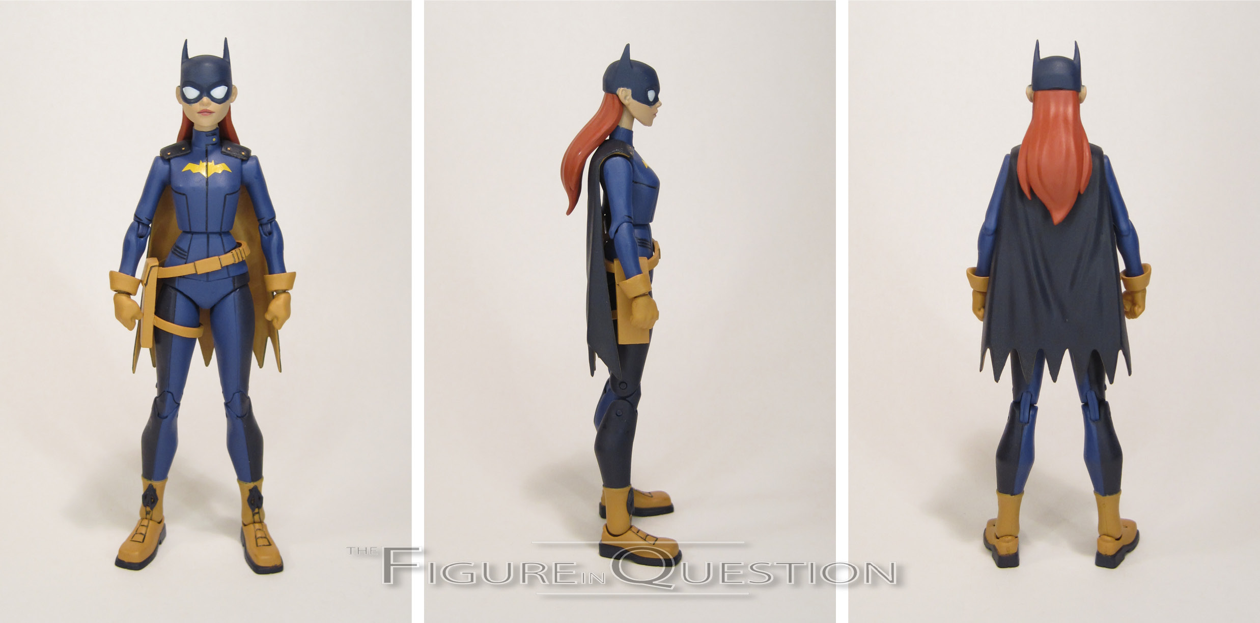 recreation of the film design, and ends up looking quite flattering in three dimensions. Like Robin, her cape is a sculpted piece, rather than cloth like Bruce’s, but it’s sensible for the shorter style. The paintwork on Batgirl is pretty decent overall. It’s bright and colorful, but not quite as sharp and clean as Batman and Damian were. It’s certainly not bad, but I feel like it could be just a little better. As is, she feels about on par with one of the middle-of-the-run Batman: Animated figures: not terrible, but not as strong as I’d prefer. Batgirl is packed with a respectable selection of accessories, including three sets of hands (fists, closed grip, and open grip), a batarang, a blowdart, a small vial, her cellphone, a grapple with two attachments, and a slice of pizza.