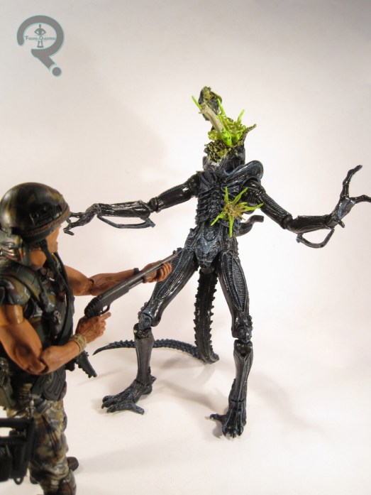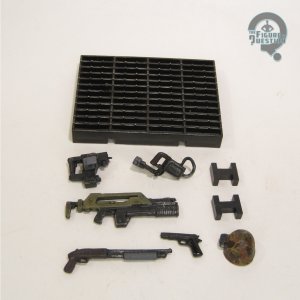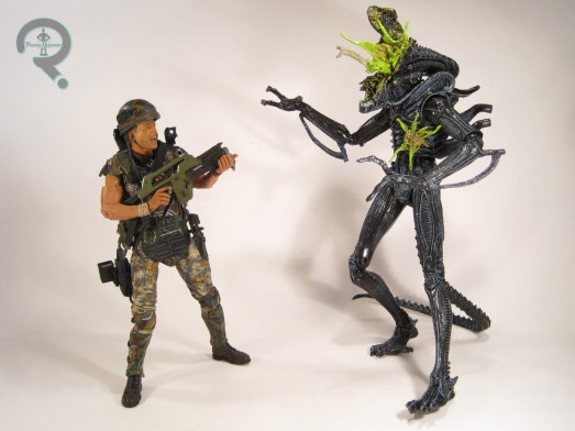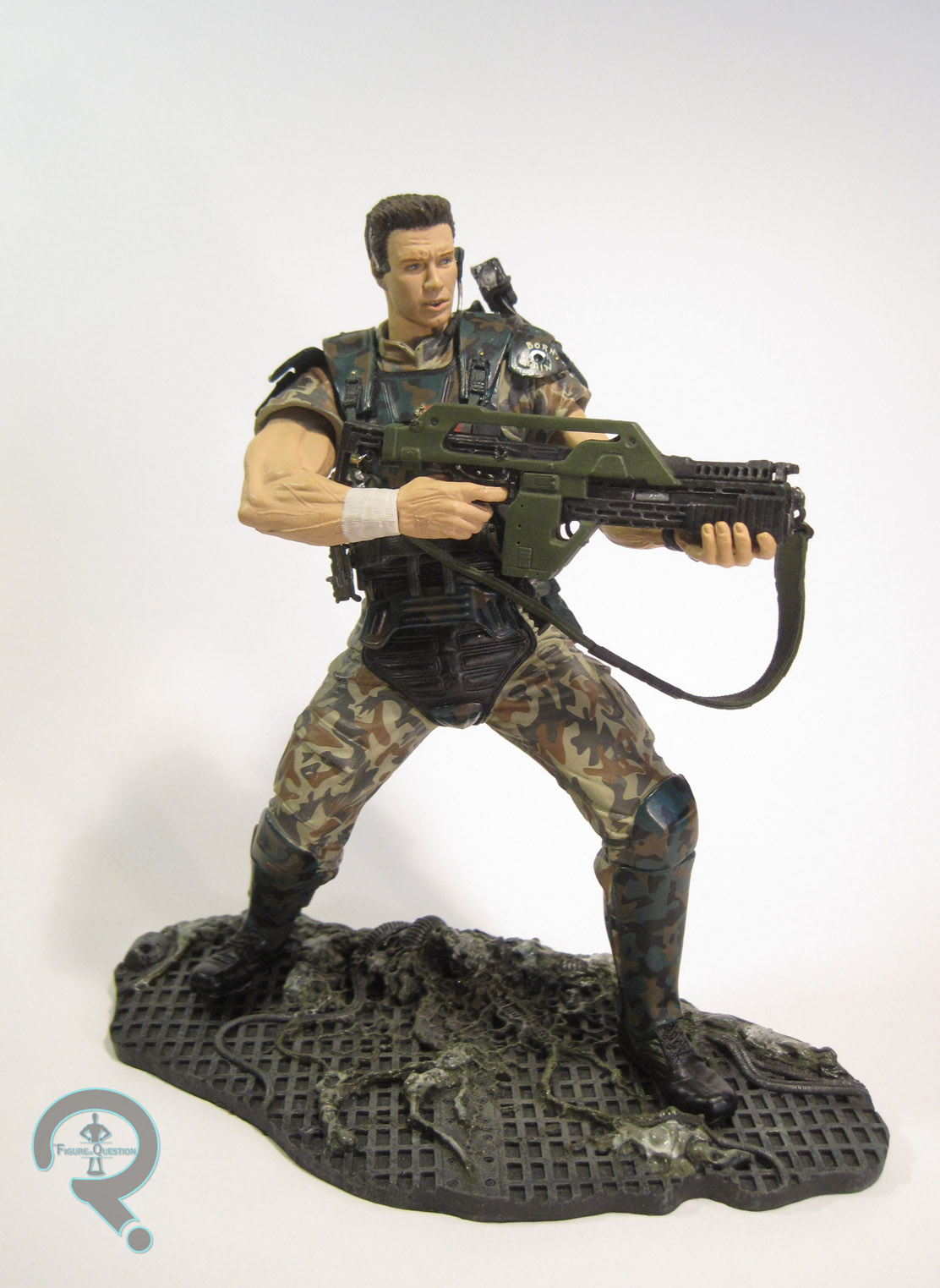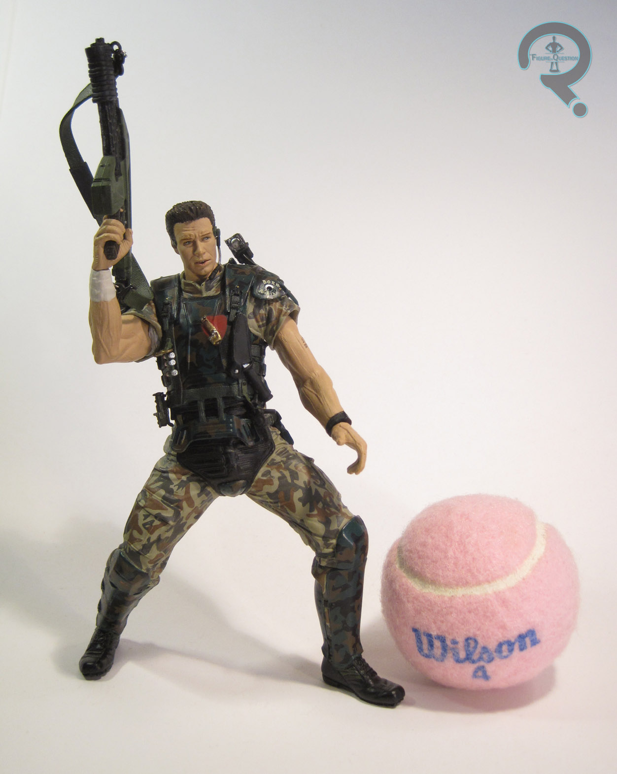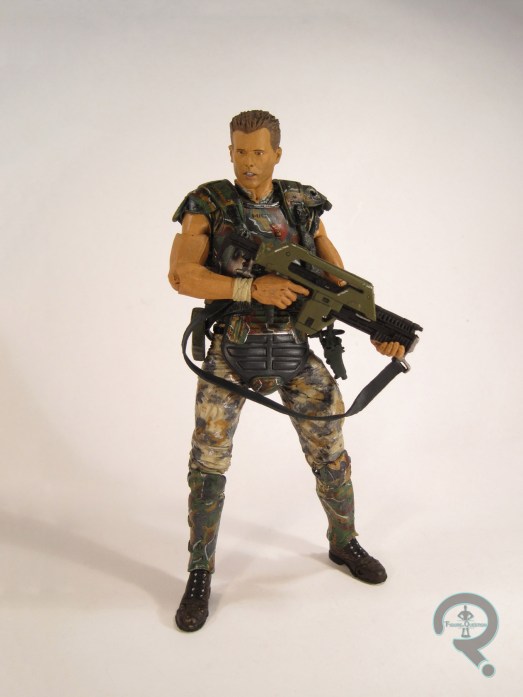 a transition point for NECA, as they moved from painted to molded skin tones, and due to the size of the production and costs associated, the Series 1 Marines had painted skin. It was far from awful, but later figures, most notably the recent Ripley and Vasquez figures, had the molded skin. For the re-releases, NECA’s brought Hicks inline with the newer figures. It’s really just a simple change on their part, but it makes for a major change in the quality of the figure. The likeness on both heads is greatly improved by the lack of extra paint, and he looks far more lifelike in general, thanks to how the light hits plastic vs. how it hits paint. In addition to the pair of heads, Hicks has his M41A pulse rifle, his shotgun for “close encounters,” a holster for the shot gun, a motion tracker, and a removable shoulder lamp. Most of these pieces are identical to the original releases, but the shoulder lamp has been tweaked to make it much easier to get it placed on his back (a huge issue with the original figures).