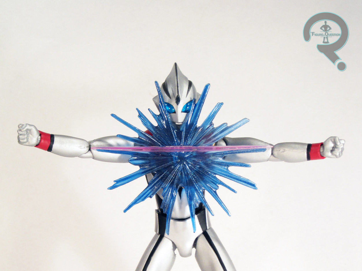 of slop here and there, but nothing so bad as to ruin the figure. I did notice a few scuffs around the abdomen, but I think that might have to do with the tightness of the articulation in that area. Like with the other figures in the Ultra-Act line, Evil Tiga has a decent selection of accessories, although it seems a bit lighter than some of the others. He includes an alternate color timer, his “Evil Barrier”, his “Evil Shot”, and 8 hands: Fists, Karate chop, open gesture, and open wide. The color timer is pretty much just like the others, a neat throw in with little practical use. The Evil barrier is a cool piece, and can be swapped with the color timer with relative ease. The Evil Shot is similar to the ultra-beam included with others, but this one slips over the wrist as opposed to being attached to a hand. The hands are mostly the same as hands used on other Ultramen, with the exception of the “wide-open” hands, which allow for some cool “evil” poses.