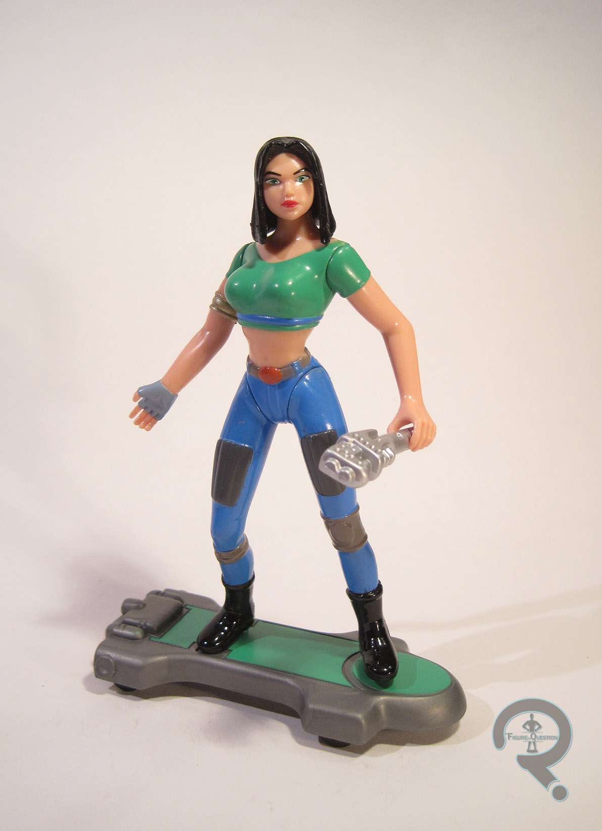 General Lynch is yet another figure from the basic assortment of Playmates’ Flash Gordon line. The figure is a little under 5 inches tall (due to his slight hunch), and he has 5 points of articulation. He’s one of the shorter figures in the set, but he’s also the widest, so…good for him? While his articulation’s more in line with the rest of the series, his sculpt actually has a lot in common with his boss Ming. There’s a lot more texture and detail, and everything as a whole is just a lot sharper than most of the other figures. The details of his face and the scaly texture of his skin stand out in particular as very cool. He still bears a resemblance to his show appearance, but also has a certain degree of added realism, which just puts him above the others. It’s definitely one of the better sculpts the line had to offer, alongside Ming. Perhaps the only real downside (apart from the articulation) is his tendency to topple over. The paint on Lynch is pretty decent as well. It’s not perfect; there are a few spots of slop and bleed over, but the colors match up with his show appearance pretty well. The General included the usual AirSled (which is a purple very similar in hue to his boss’s sled), as well as strange, ice cream scoop-looking weapon of some sort.