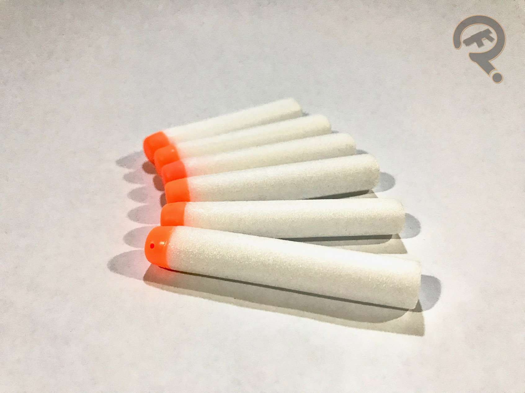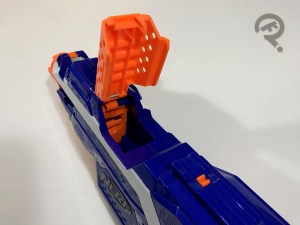 The Demolisher was released in 2014 under the N-Strike Elite line in their bizarre switch from the standard phthalocyanine blue and titanium white color scheme to a sort of burnt sienna and ivory (blue and white became orange and white). It features 2 separate firing mechanisms that allow it to fire both Elite darts and the same big rockets that the Thunderblast uses. It sounds interesting and complicated at first until you realize they stuck the Thunderblast on the underside of a scaled up Stryfe and painted it orange. The shell is completely original at least, and I actually think it looks really aggressive and cool. I’m not sure why but I really love that tubey bit that loops under the barrel. I also, for some reason really felt like I wanted to call it the Bullshark instead of the Demolisher. Again, not really sure why other than it just felt right. Both systems work well, the missiles fly out with a satisfying *thunk* and the darts fly far and hit decently hard. I really cannot stress enough that this is just a Stryfe and a Thunderblast. Ergonomics are good once you get used to how front-heavy the blaster is. My only gripe in this category is the design of the stock which has space to hold an extra missile. The problem is it holds the missile in the top of the stock, meaning you basically can’t aim when there’s a spare missile in there, and even when it’s out, the strange bulge makes putting your face against it kind of uncomfortable. As far as functionality, obviously the blaster has a stock attachment lug but it also has a barrel lug and 2 rails for other accessories. One thing that stuck out to me and probably only me because that’s the kind of guy I am, is the feel of the trigger. It’s very smooth first of all, but it also has a really nice pressure curve when you pull it. On my Demolisher at least, it starts rather stiff, but past a certain point, the amount of force to pull it the remaining distance goes way down which makes it feel really snappy and responsive. Maybe I’m just imagining it, but it makes me happy, and it may make you happy too. On a different note, one of the more immediately noticeable appeals of the Demolisher over other blasters is its appearance, which really sets the tone well when you bust into your younger siblings’ room and they see a Nerf blaster with a missile launcher pointing at them. It’s a ton of fun. The original Demolisher came packaged with a 10 round curved magazine, 10 Elite darts, 2 missiles, and a stock, but there’s just recently been a new Modulus version that comes with a bunch of other stuff. I don’t have one of those yet, though, so I’m just telling you about the original.