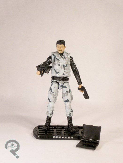 Sgt. Stone was released as part of the G.I. Joe: Rise of Cobra tie-in figures in 2009. The line used a weird and sort of complicated interplay of “collections” and “waves”, and Stone was part of Collection 2 Wave 2…which really just means he was part of the larger push of product made up of the first two waves of both collections that all hit shortly before the film’s release in 2009. The figure stands 4 inches tall and he has 22 points of articulation. He shared his torso and legs with the movie version of Zartan, fitting, since Zartan was in Joe fatigues for his figure. Stone’s construction is the standard 25th style assembly. It’s generally not a bad set-up, although that mid-torso joint always has a tendency to be a bit finicky. Stone’s uniquely sculpted pieces include his head, arms, and the armored vest for his torso. The head doesn’t have a Fraser likeness to speak of; the eyes are too small and too