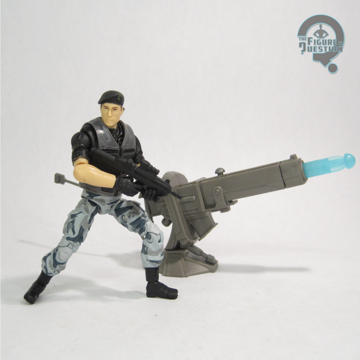 high up, and the mouth sits too low. He’s very generic. So, in that regard, I guess he’s not incredibly *unlike* Fraser either. Just sort of there. His color work matches the film’s general aesthetic, which was a lot more black, blue, and grey. There’s a bit of bleedover from the hair on my figure’s left ear, but it’s otherwise decent application. Stone is packed with a pistol, machine gun, knife, large missile launcher and corresponding missile, and a display stand. My figure is missing the knife, but honestly I can’t say I miss it. Beyond that, he gets some decent basic level stuff, and then there’s always that missile launcher, since Hasbro sure did love those.