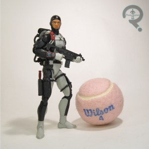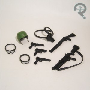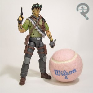 Like the Marine, the Action Soldier’s single release is the same as the boxed set version. The basic Soldier’s a basic soldier, so it makes sense, just like with the Marine. He’s once more the inspiration for the keychain release. As I noted on that one, the Soldier is a little bit skinnier than the other three, for whatever reason. I don’t know if it’s just a difference of how the details read, but it does seem a bit less pronounced on this original version of the mold, which is a plus. His paint work is notably pretty drab, as you’d expect, but it works pretty well, and makes him nice and generic. The soldier was packed with a backpack, pistol, rifle, stand, missile launcher (with mount), and a bunker display piece. While the Marine’s accessories are the same between both of his releases, the Soldier’s accessories change all of the “tree” parts to black, rather than the brown of the single.
