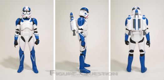 First appearing in a very bit appearance in the background of one shot of the fifth season Clone Wars episode “Sabotage,” the 501st Jet Trooper’s rather unique design was set to get a mass release figure as part of Hasbro’s main Clone Wars line in 2013, as part of the wider Star Wars line re-launch that was to go along with the 3D re-release of Attack of the Clones. When Phantom Menace’s 3D re-release went over worse than Phantom Menace‘s original release, the AotC re-release was scrapped, and the domestic release of the toys to accompany was cancelled. The nine Clone Wars figures included wound up with only an international release, which was kind of a shame. The design wound up brushed off for a few other projects, including Battlefront II, which finally got the Jet Trooper another chance at a figure…albeit an exclusive one. Eh, you win some, you lose some.