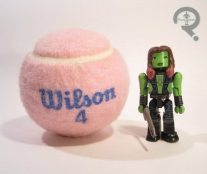 articulation. Her mobility is a little on the stiff side, but she does at least get the pinless joints. Also of note is just how hard it is to keep this figure standing, which is rather frustrating. She’s sporting an all-new sculpt, which looks rather accurate to the animation models, placing her on par with the figures from the last set in that regard. In terms of coloring, she’s again pretty well-matched to the show look. The paint application is a little sloppy on edges of hands but otherwise clean, and the colors certainly pop. Warrior Gamora is packed with her own version of Thanos’s double-bladed thing, as well as the left arm of Hydra Stomper, and an extra left hand.