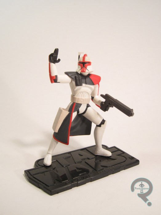 Durge was released as a single figure in the second assortment of animated Star Wars: Clone Wars figures, released in 2003. He was also subsequently re-released in 2005 as part of the “Sith Attack Pack” entry in the Commemorative DVD Collection, alongside Asajj Ventress and General Grievous. Mine is the single release, though the two are more or less identical. The figure stands about 3 3/4 inches tall and he has 5 points of articulation. As with all of the 2D animated figures, this one prioritizes form over function. His articulation his limited to the neck, the shoulders, and wrists, with no movement below the torso at all. The movement he *does* have is largely for minor tweaks to the one predetermined pose he’s got. Ultimately, with Tartakovsky’s style, the glorified statue approach is the best way to handle things. It translates very well to this set-up, and they’ve made him work pretty well from most angles. He’s clean and he’s very stylized, and it’s very clear who it’s supposed to be. His color work is flat colors, capturing the cel animation’s coloring set-up. The application’s all fairly clean, and there’s no notable missing details. He’s packed with his jousting-lance-thingy from the show, as well as one of the stands that was packed with all of the figures. It’s not much, but none of these figures were very accessory heavy.