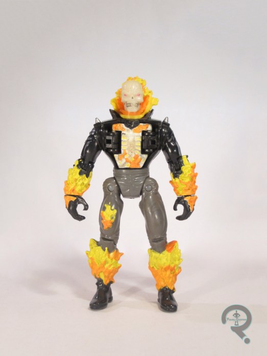 Ghost Rider was part of a large subset of figures that were purchased for me by my dad what a nearby comicbook store called Ageless Heroes went out of business.  The store had a large stock of the various 90s 5 inch figures, and they were being sold for quite a discount.  I know this was my go to Ghost Rider for a while, and I really thought the chest thing was pretty cool.  Of course, I only bought Ghost Rider because I felt my Champions display needed him.   Yeah, I was that kid.  And for all of you who went “who are the champions?”, go look up Marvel’s Champions.  Be amazed at my obscure references!