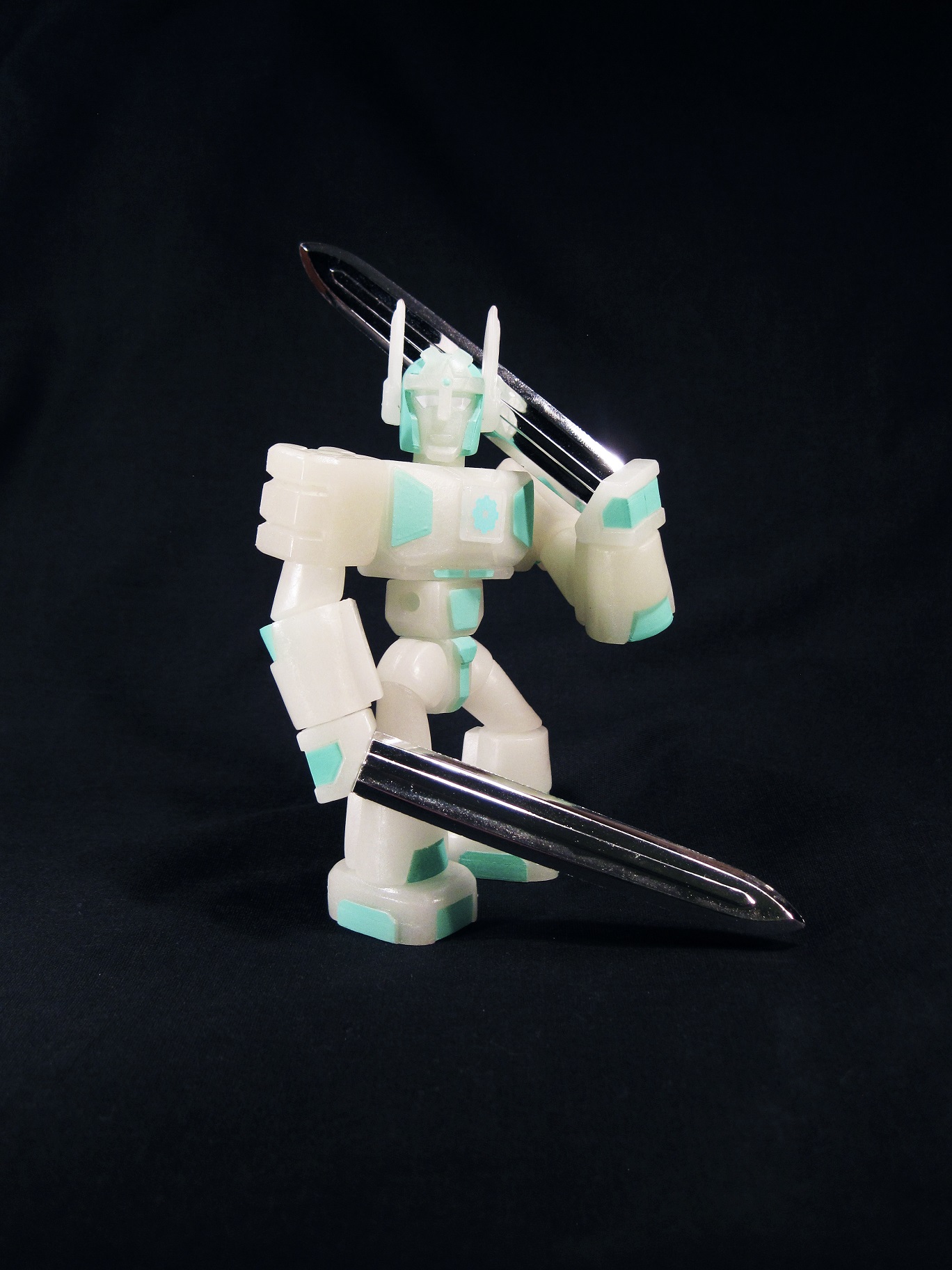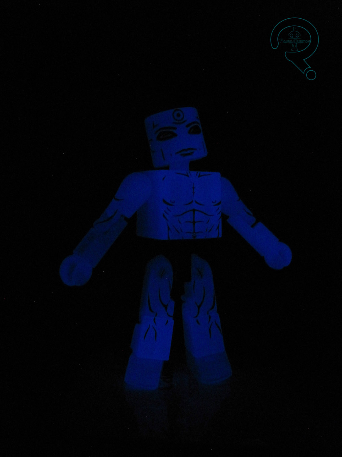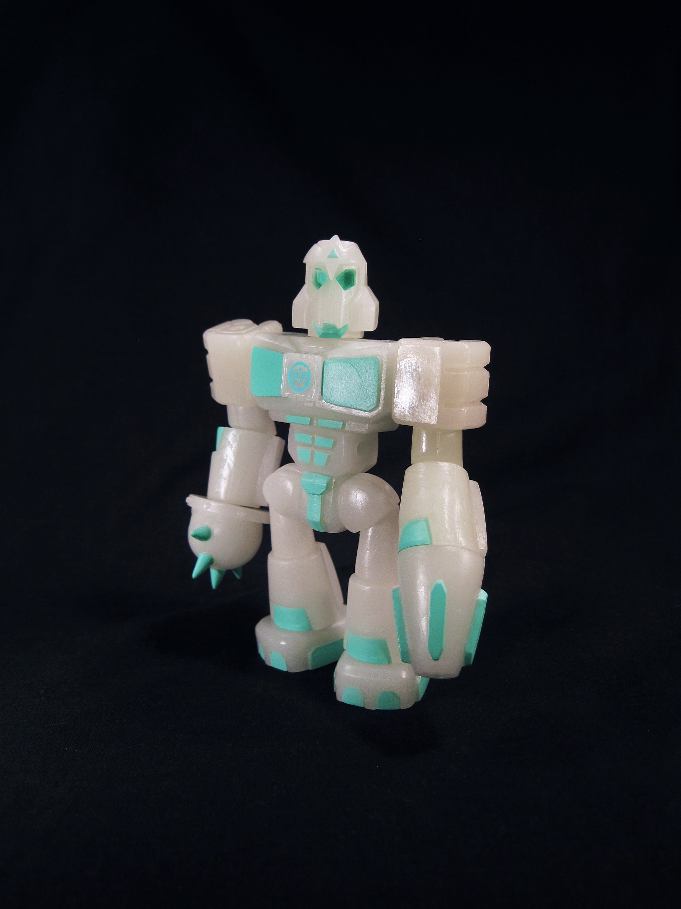 *As cool as glow-in-the-dark plastic is, the coloring of it, and the way it absorbs light make it virtually impossible to see this figure in pictures taken with the usual white background.  So, for those of you wondering, that’s why he’s on a black backdrop.