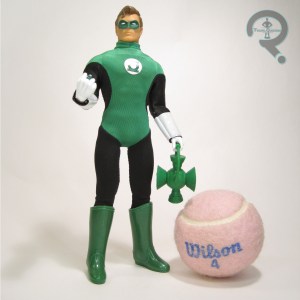 “While training in a flight simulator, test pilot Hal ‘Highball’ Jordan was suddenly transported to the crash site of an alien spacecraft. Recognizing Jordan as a man without fear, the injured alien passed to Jordan his green power ring and energy battery or ‘lantern’ which charged the ring. Jordan has since used the ring’s fantastic powers for good, distinguishing himself as one of the finest members of the elite intergalactic police force known as the Green Lantern Corps.”