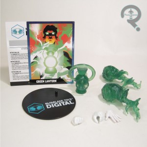 Green Lantern — The Silver Age is part of the “Digital” assortment of DC Multiverse, which also sports a classic Aquaman and a less classic Batman.  The figures are all officially under the “DC Direct” banner, but they’re effectively indistinguishable from the ones without the banner, so…there it is, I guess?  The figure stands 7 inches tall and he has 35 points of articulation.  For the most part, GL is re-using the standard male build base body introduced in the Blue Beetle/Booster Gold set.  It’s a solid super hero body, with reasonable proportions, a not atrocious articulation scheme, and minimal detailing to throw off a clean look.  He’s still got the ridge at the top of his boots, but it at least flows with his costume design, and it’s a far cry from the excessive extra detailing that prior GLs have gotten on their suits.  He gets a new head, which is…I don’t know how to say this: it’s really good.  Like, just genuinely a really strong sculpt.  No “for a McFarlane figure” caveat or anything.  It aims to be a Silver Age Hal Jordon, and that’s where it lands, pretty cleanly.  His hair’s got that right flippy quality, the expression has that right level of cockiness, and the mask is crisp and sharp in its detailing.  He’s got a new right hand sculpt as well, which is in a fist and sporting his ring, you know, as it should be.  GL’s paint work is minimal, but what’s there is pretty sharply handled.  I also feel that the shade of green is a more appropriately Green Lantern-y shade, though that’s most certainly a personal thing.  GL is packed with three different left hands (in fist, flat, and gripping), as well as the power battery and two hand effects pieces from Parallax (why he’s got an effect for his left hand is beyond me, but I won’t complain about getting something extra), and a display stand with “McFarlane Toys Digital” on it.  He’s also got a collector’s card and a card with the information for whatever digital totally-not-an-NFT-with-a-different-name thing McFarlane packed with all three of these figures.  I have no idea what the thing is, because I’ve got no interest in downloading the app or setting up an account.