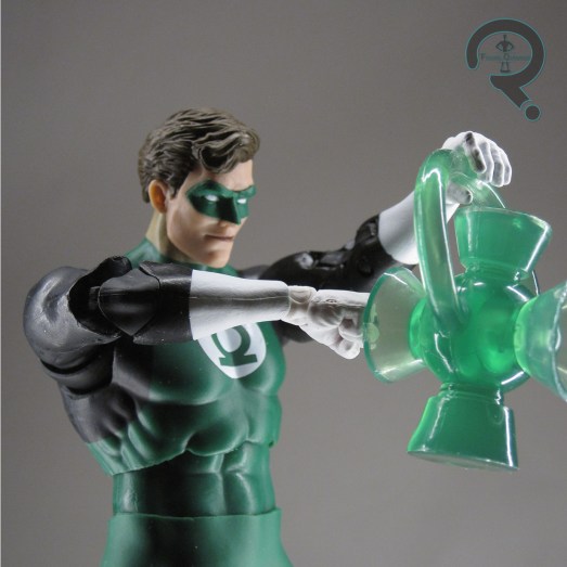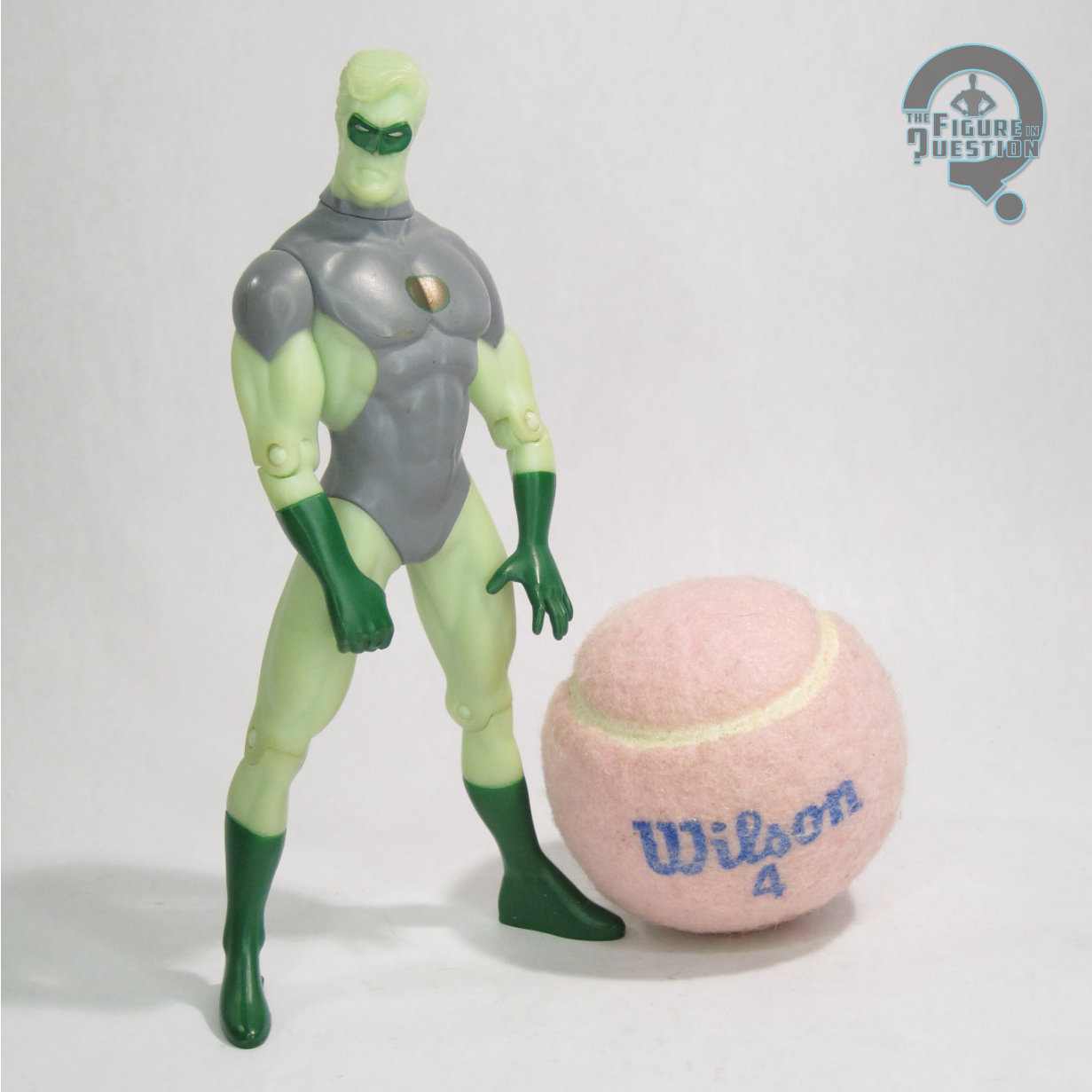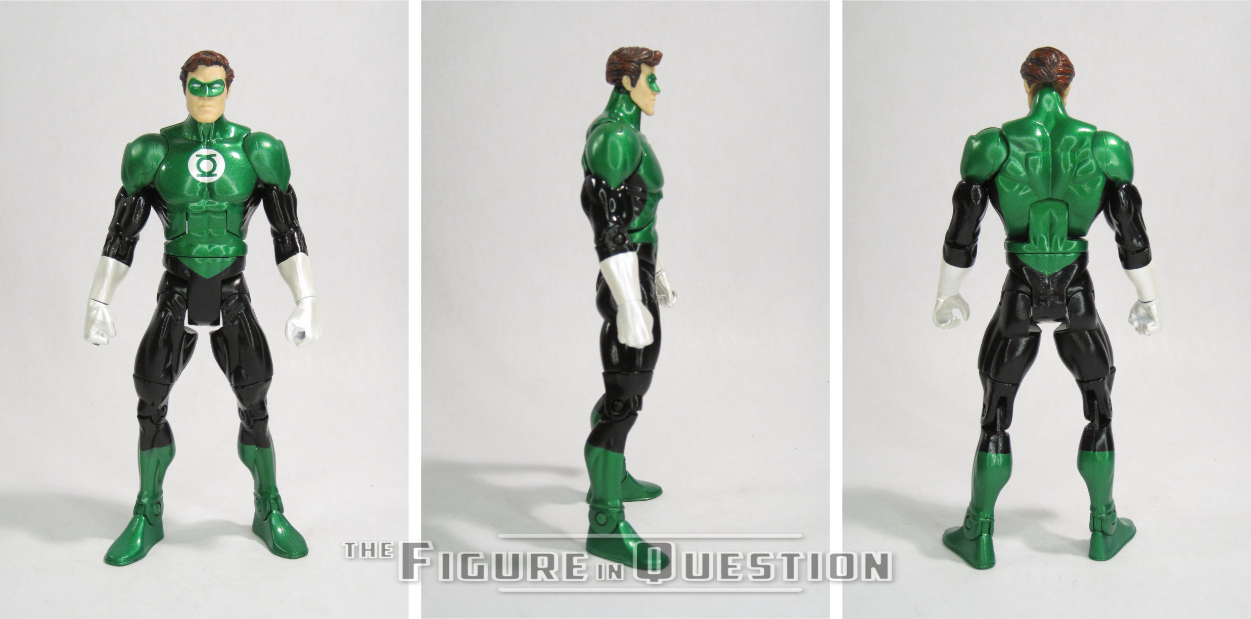 Green Lantern was released in Series 3 of Mattel’s DC Universe Classics, which hit in the fall of 2007.  While this wasn’t Mattel’s first Hal Jordan (the infamous Holiday Hal from JLU hit in 2005), it was the first to go to retail.  He was the assortment’s heavy hitter, and was paired off with Sinestro for the hero/villain dynamic that headlined the first few assortments.  The figure stands 6 1/2 inches tall and has 23 points of articulation.  Hal was built on the medium male base body, which was first used by Black Manta in the prior series, along with a new head and right hand, all of them supplied by the Four Horsemen.  The head’s the real star piece, as it has to do the heavy lifting.  It’s a really strong, sort of quintessential Bronze Age Hal.  It’s not *exactly* Jose Garcia-Lopez, but the vibe is certainly quite similar, and it just reads well for the character.  It’s also very sharply defined, and avoids being too reliant on paint to sell it.  That said, the paint does alright selling it, and does do more of the heavy lifting on the rest of the figure.  GL’s one of those character’s where a fully painted suit isn’t too distracting, since it’s supposed to be sleek and one-piece anyway.  Application’s generally pretty clean, and there’s even som slight accenting on the green sections to highlight the sculpt.  At this point, I do have to address the one major oddity of this figure: the residue.  Yes, the first batch of Hals, which my copy hails from, have some sort of issue with the interaction of the plastic and the mold release, and when exposed to air for long periods of time, they develop a white filmy substance over the arms and legs.  Said substance wipes off with a damp cloth, with not notable harm to the figure, but it will re-appear over time, and he’ll have to be wiped again.  So, just remember to wipe your Hals periodically.  It’s not weird.  Don’t make it weird.  Mattel did a later re-release of Hal under the “All-Star” banner, which fixed this issue, as well as tweaking some of the paint/color choices.  Both versions included Hal’s power battery, which seems to be an oddly bright green; I’ve always envisioned it being more on par with the color of his suit, but it’s more of a lime green here.  The Series 3 release also got a piece to the Solomon Grundy Collect-N-Connect, while the “All-Star” version got a stand.