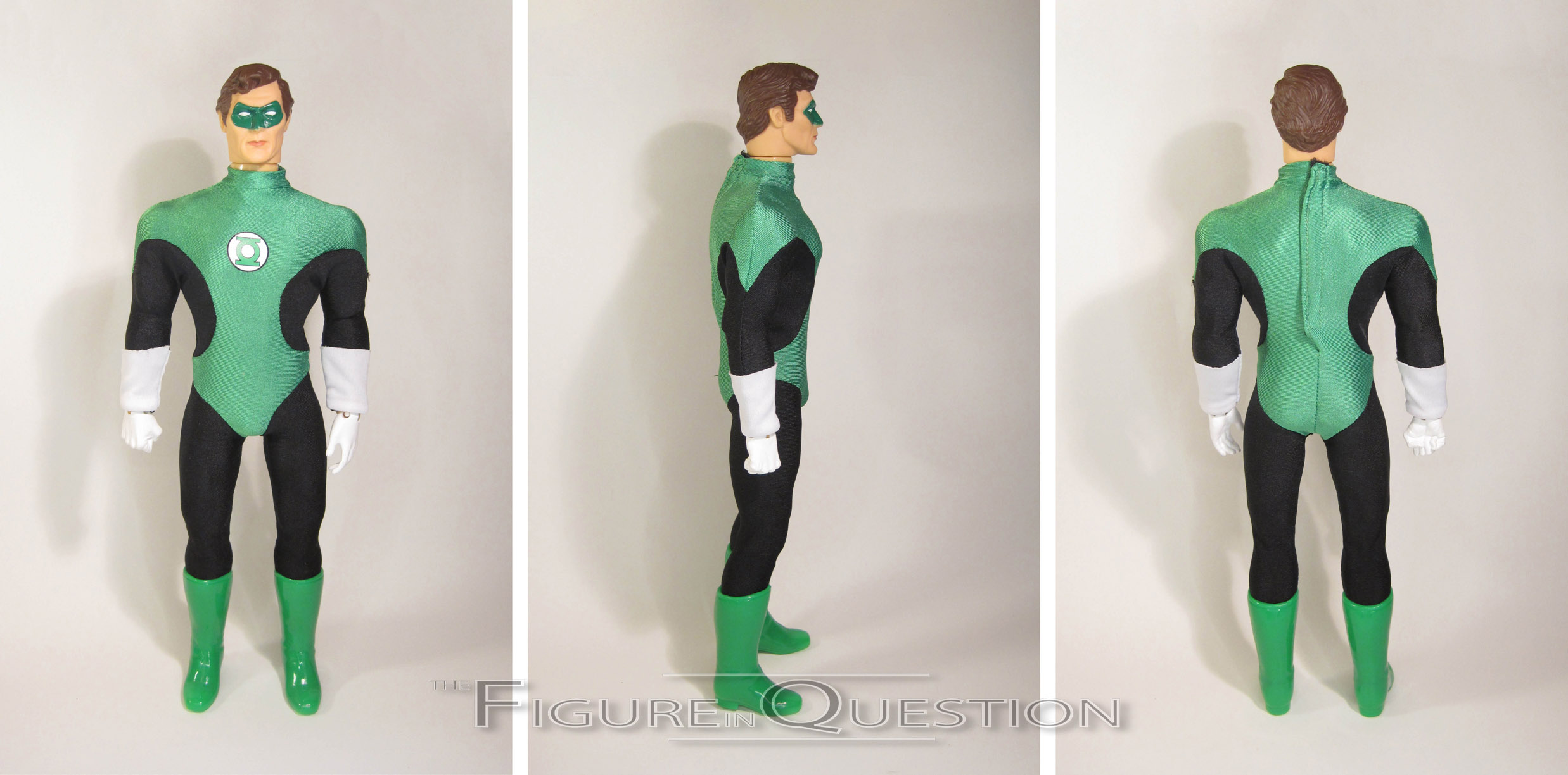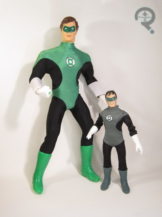 Green Lantern is part of the second series of Mego’s DC Super Heroes line, alongside Superman, Batgirl, and Poison Ivy.  Hal is sporting his classic ‘70s appearance, which is the correct era for a genuine vintage GL, had Mego released one back in the day.  The figure stands 14 inches tall and has 18 points of articulation.  All of these figures appear to be patterned after the body of the Mego-designed and Denys Fisher-released “Power Action” Superman figure from the late ‘70s.  It’s a respectable starting point.  It’s similar to the standard Mego body, but with slightly tweaked proportions, giving it a generally more heroic stature, which works nicely for the likes of the DC Super Heroes.  It’s also got some extra articulation in the knees, which is fun.  GL gets an all-new head sculpt, which is actually quite nice and surprisingly detailed.  I’d love to see it shrunk down for an 8-inch body.  GL also gets a unique right hand, sporting his lantern ring, as has become the standard practice for such figures.  His costume is a three piece affair, made up a spandex jumpsuit and a pair of plastic boots.  The body suit is fairly well tailored to the body; I appreciate the use of different materials stitched together, rather than just silk-screening.  It makes it look a lot cleaner.  Hal’s paintwork is mostly confined to the head, which is nicely applied, sharp, and sporting some quite subtle accent work.  GL is packed with his power battery, which is another fairly standard thing for him.  He can’t really hold it, but it’s nicely sculpted, so there’s that.