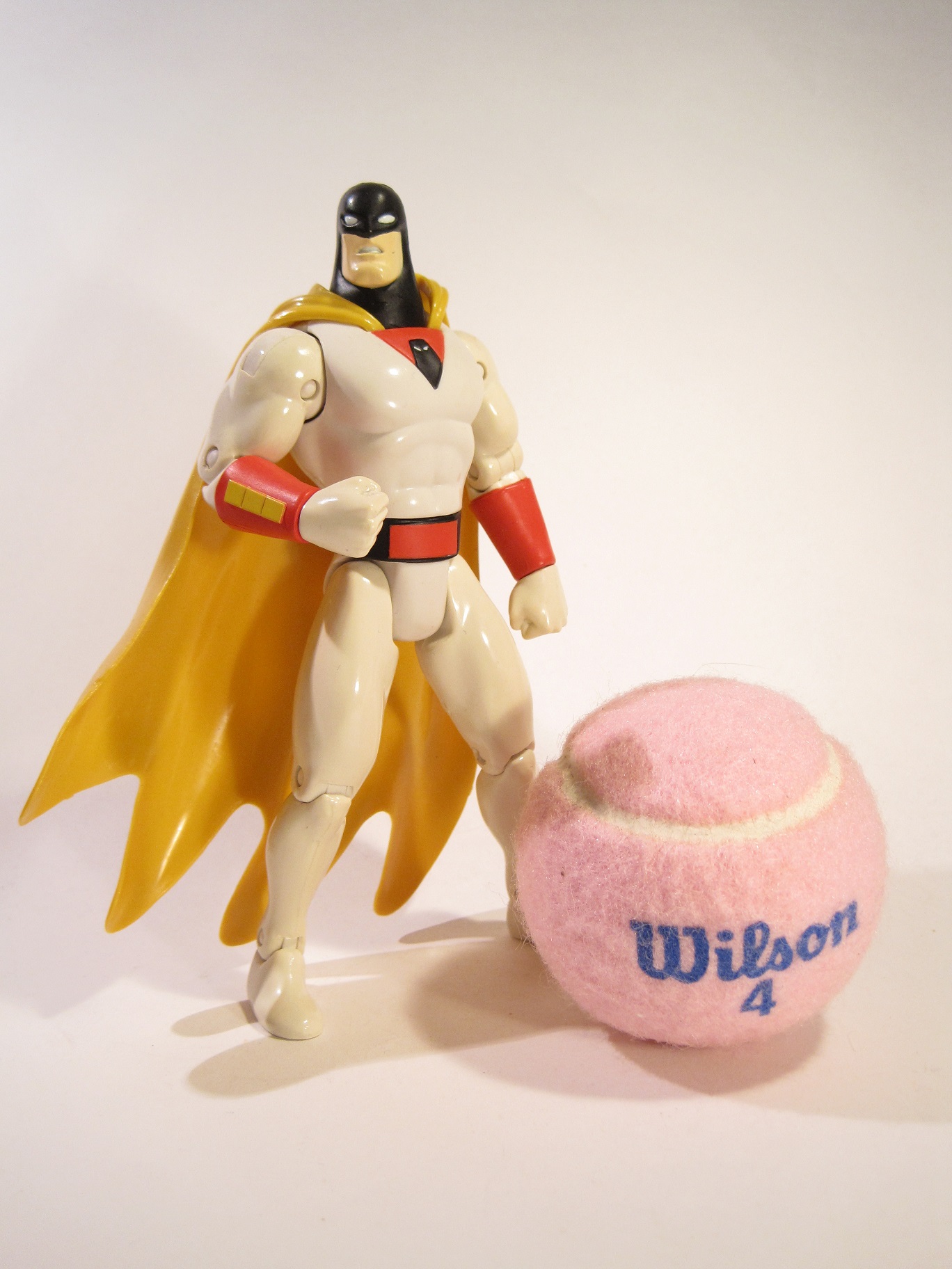 Space Ghost is part of Mezco’s 5 Points line, released as a Toy Fair exclusive in 2020. There were two versions of him available, one in standard colors, and the other all clear. This one’s the standard colors, in case you couldn’t tell. The figure stands about 3 3/4 inches tall and has…well, 5 points of articulation. The line’s called “5 Points” for a reason, and they sure do stick to it. The whole style of this line is….interesting. Like, the 5POA thing is definitely going for sort of a retro vibe, and some of the licenses they’ve chosen likewise match up with that, but then the sculpts have a more modern sensibility to them. In Space Ghost’s case, the sculpt does still wind up with a bit more of that retro sensibility, since that’s just so baked into Space Ghost’s core design. The sculpt’s