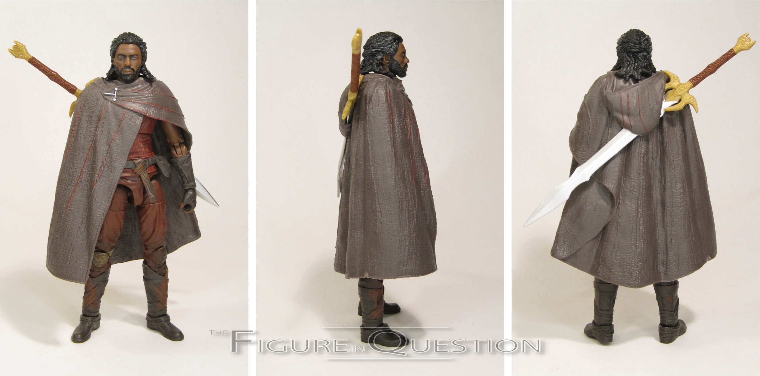 Heimdall’s only prior coverage in the line was his Dark World release, which actually wasn’t bad, and is also his fully armored attire, which was distinctly different from his on the run look from Ragnarok. Heimdall gets two sculpted add-ons, for his hair and for his cloak/coat. The hair is an alright piece, though it certainly feels rather too kempt for Heimdall’s look in Ragnarok. Where Loki’s piece seemed too bulky and long, this one feels too tame and short. The chest piece is also…it’s just not great. Making the whole thing one piece means that the right arm is effectively trapped in place, and the legs and waist are also pretty restricted, and on top of that, the neck can’t really do much either, so he’s just generally not really posable. And, to add insult to injury, the piece is just flat out not accurate to the character’s look, like at all. It’s got him wearing some sort of heavy coat and multiple layers, when in the movie he’s got a sleeveless shirt and a simple pair of pants on under the cloak. I’m not sure if this was based on early concept art or what, but it’s just not really right, and the figure would have really been better off if this piece had just been the cloak, rather than the whole thing. The paint work doubles down on the inaccuracy of the sculpted pieces, resulting in a kind of dull look for the figure. Heimdall is packed with his sword, as well as a clear display stand.