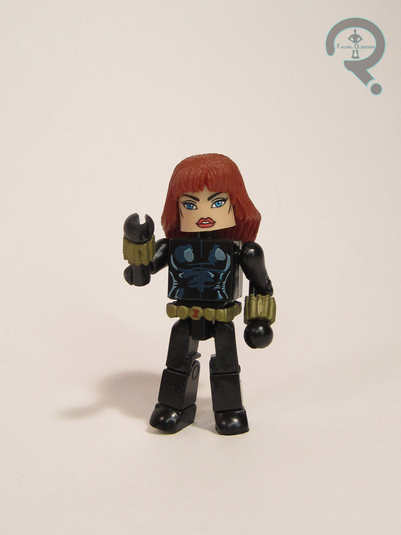 This set marked Black Widow’s Minimate debut, and she served as a prominent selling point for a lot of people. Like the others, she’s seen here in her classic ‘70s garb. Not quite as timeless as some of the others in the pack, but a very good choice nevertheless. Widow has four sculpted add-on pieces; one for the hair, two for the widow’s stingers, and one for the belt. Apart from the belt, which is shared with the Ghost Rider from this set (and let’s be honest, was really designed for her and re-used on him), all of her pieces were new. Sharp detailing, and good recreation of her look from the comics. Widow’s paint is by far the best in the set. The shiny black for the body suit looks really spiffy, and the detailing on the torso is an amazing feat in adding dimension to a flat torso block. The face could perhaps stand to be a little more emotive, but it still feels true to the character. There are no accessories for Widow in this set, which is a bit of shame, but not totally surprising, since Widow’s primary means of attack at the time was her widow’s stingers.